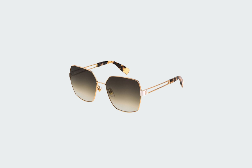 Утонченная геометрическая оправа выполнена из легкого золотистого металла. Стильные пластиковые заушники украшены черепаховым принтом. Градиентные линзы со 100% защитой глаза от вредного ультрафиолета. В комплекте — фирменный футляр для очков и салфетка.