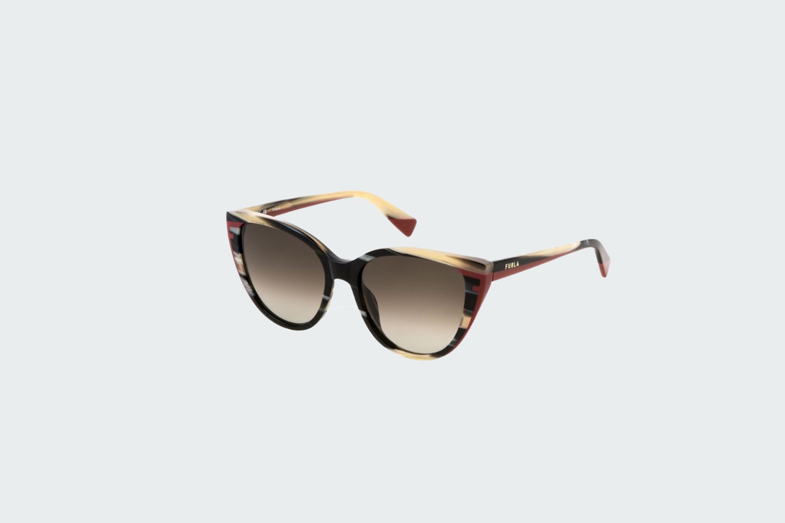 Стильная узорчатая оправа выполнена из легкого прочного пластика. Градиентные линзы со 100% защитой глаза от вредного ультрафиолета. В комплекте — фирменный футляр для очков и салфетка.