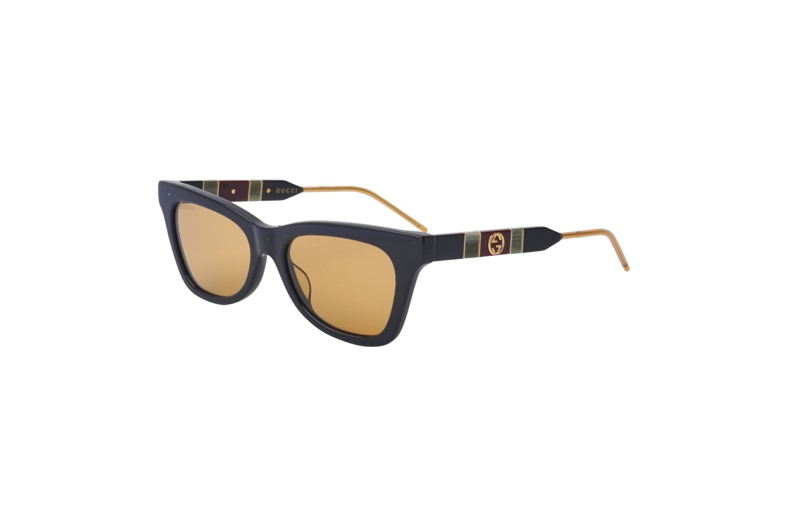 Классическая прямоугольная оправа выполнена из черного ацетата и дополнена массивными дужками с логотипом бренда. Желтые линзы на 100% защищают глаза от вредного ультрафиолета. В комплекте — фирменный чехол и салфетка.