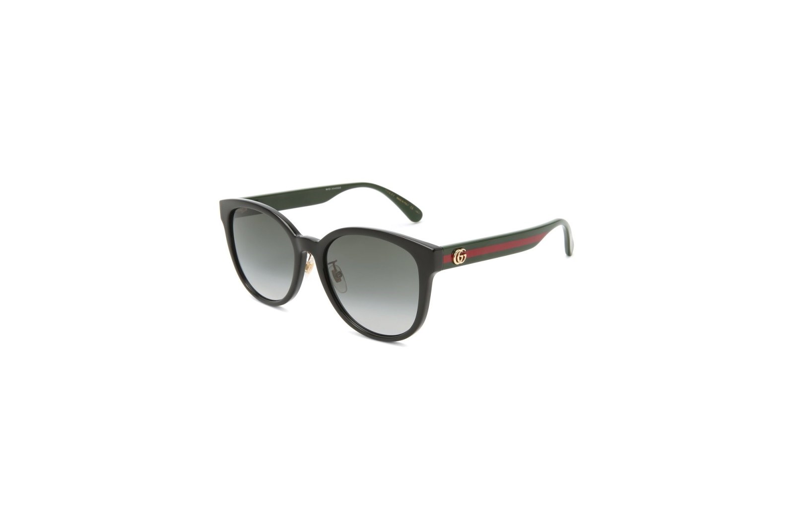 Классическая квадратная оправа выполнена из черного ацетата. Дужки в расцветке бренда украшены логотипом. Градиентные серые линзы на 100% защищают глаза от вредного ультрафиолета. В комплекте — фирменный чехол и салфетка.