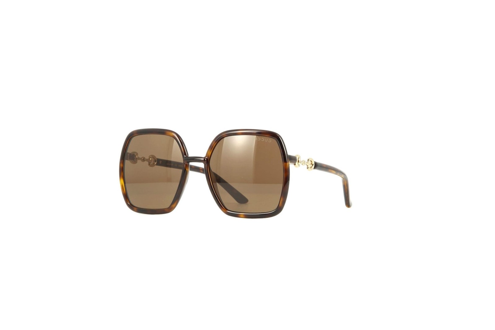 Объемная квадратная оправа выполнена из коричневого ацетата в черепаховой расцветке, а дужки украшены красивым плетением из металла. Коричневые линзы на 100% защищают глаза от вредного ультрафиолета. В комплекте — фирменный чехол и салфетка.