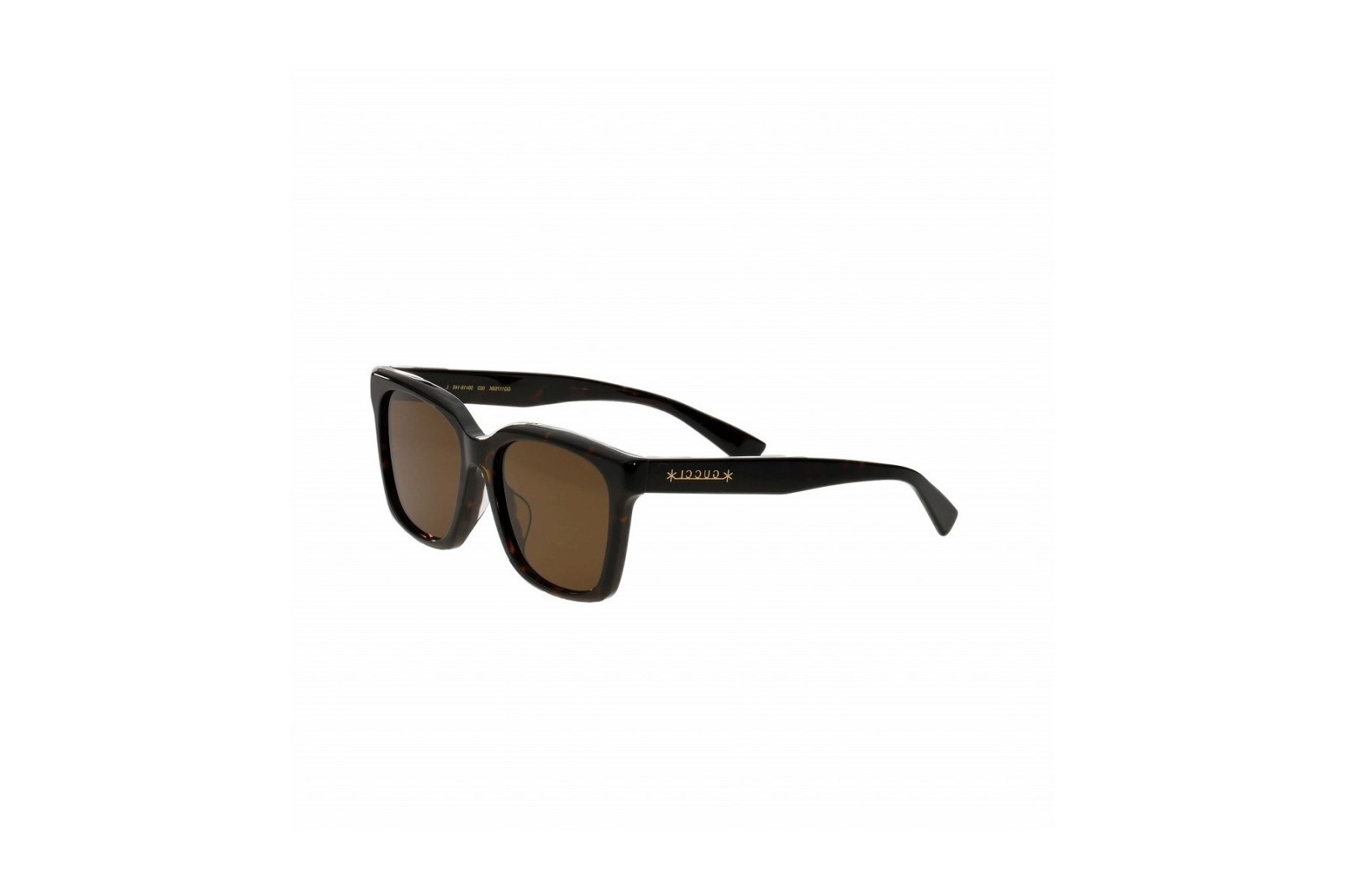Классическая прямоугольная оправа выполнена из коричневого ацетата в черепаховой расцветке. Коричневые линзы на 100% защищают глаза от вредного ультрафиолета. В комплекте — фирменный чехол и салфетка.