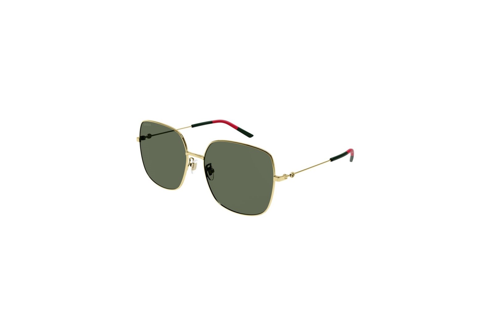 Объемная квадратная оправа выполнена из легкого золотого металла и дополнена ацетатными заушниками. Зеленые линзы на 100% защищают глаза от вредного ультрафиолета. В комплекте — фирменный чехол и салфетка.
