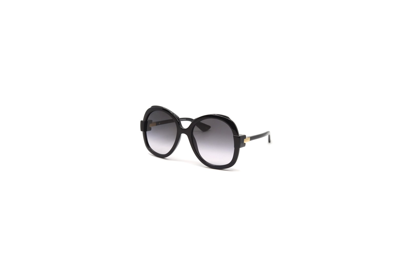 Массивная круглая оправа выполнена из черного ацетата, а дужки украшены логотипом бренда. Серые линзы на 100% защищают глаза от вредного ультрафиолета. В комплекте — фирменный чехол и салфетка.
