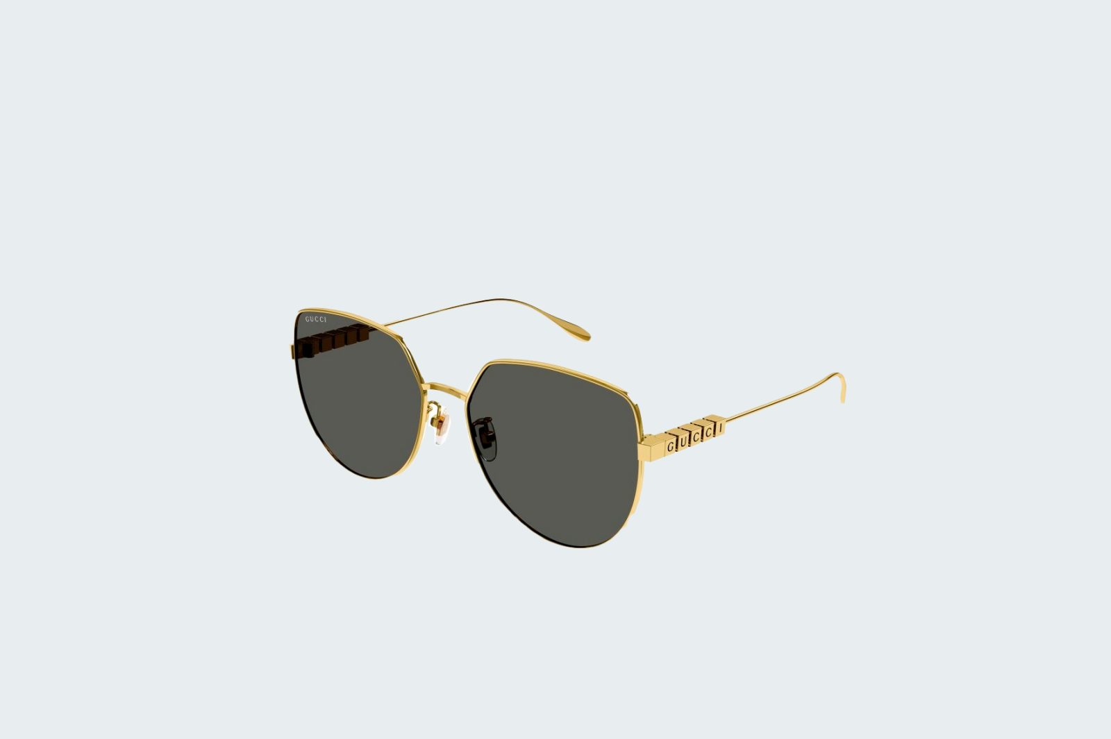 Солнцезащитные очки Gucci GG1435SA-001 58 сочетают в себе элегантность и современный дизайн. Модель представлена в насыщенном золотом цвете с деталями на дужках. Универсальная форма оправы «бабочка» обеспечивает комфорт и стильную посадку. Линзы графитового тона с UV-защитой надежно оберегают глаза от ультрафиолетового излучения. Этот аксессуар станет идеальным дополнением для повседневного и делового гардероба.