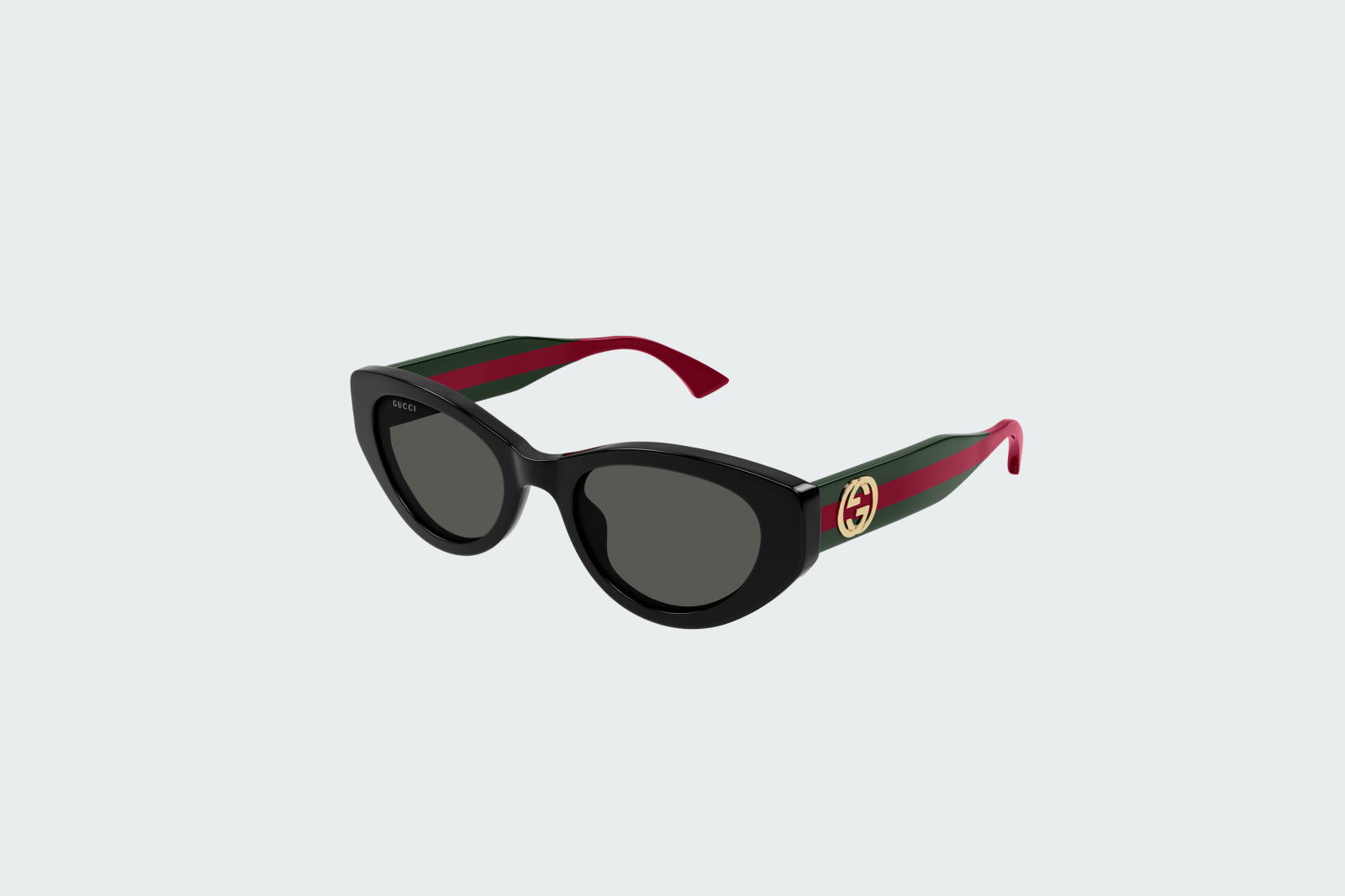Солнцезащитные женские очки GUCCI модели GG1862S-001 с размером 52 выполнены в элегантной и всегда актуальной форме «кошачий глаз», которая придает образу женственность и неповторимый шарм. Глянцевая черная оправа создает универсальный и современный образ, а дужки с полосами в цветах знаменитой красно-синей ленты добавляют мгновенную узнаваемость бренда. Модель оснащена качественными линзами сплошного серого тона, которые обеспечивают защиту от UV-лучей. Дизайн гармонично дополнен металлическими элементами с легендарным логотипом G золотистого цвета на дужках, подчеркивая принадлежность к миру высокой моды. Эти очки станут стильным аксессуаром, который подарит комфорт и безупречный внешний вид в солнечные дни.