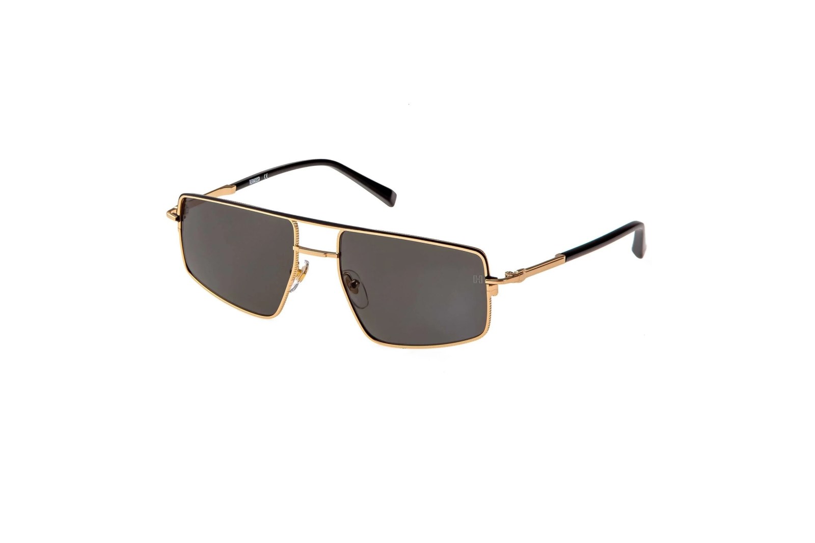 Эффектная прямоугольная оправа выполнена из легкого золотого металла и дополнена черными заушниками. Коричневые линзы на 100% защищают глаза от вредного ультрафиолета. В комплекте — фирменный чехол и салфетка.
