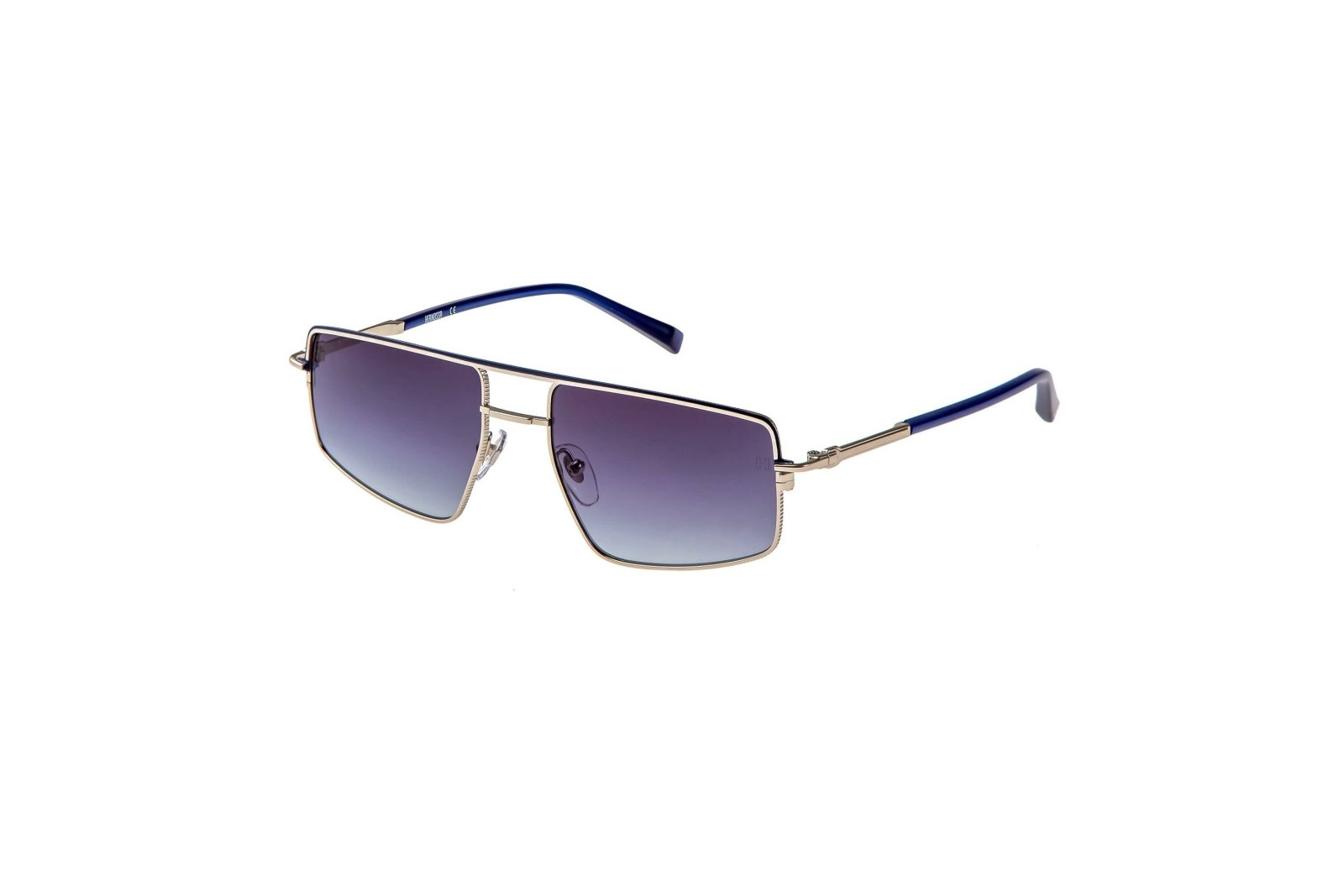 Эффектная прямоугольная оправа выполнена из легкого бронзового металла и дополнена синими заушниками. Градиентые фиолетовые линзы на 100% защищают глаза от вредного ультрафиолета. В комплекте — фирменный чехол и салфетка.