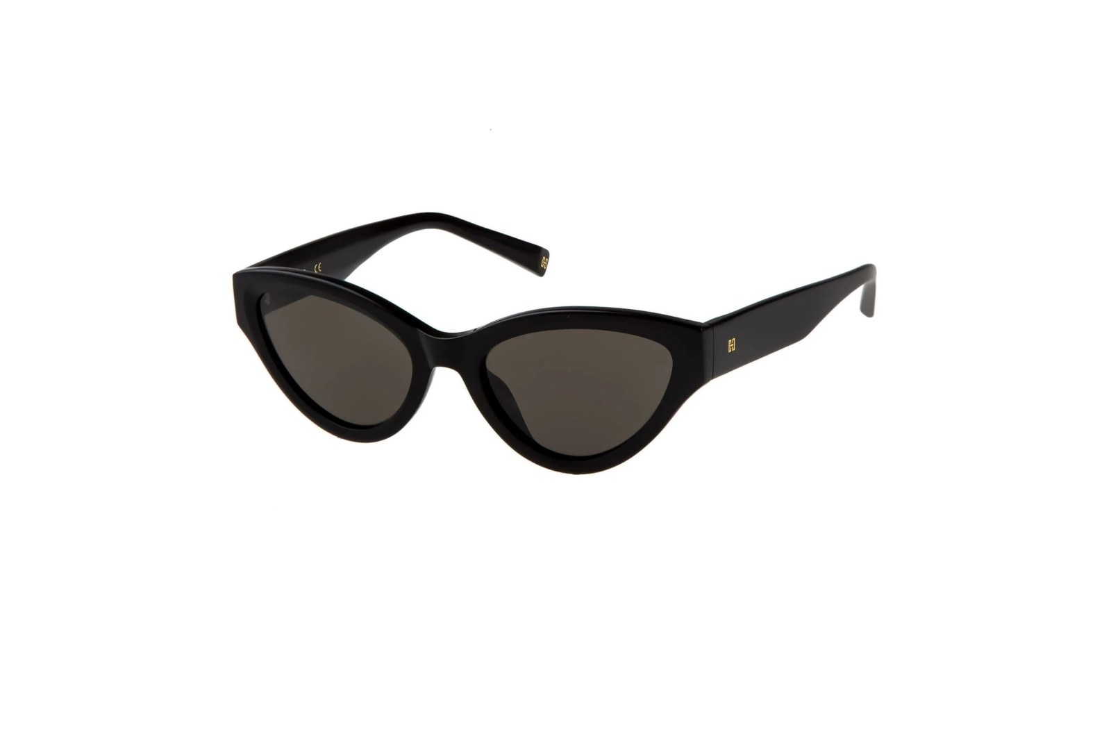 Изящная модель с оправой «кошачий глаз» выполнена из черного ацетата и дополнена массивными дужками. Коричневые линзы на 100% защищают глаза от вредного ультрафиолета. В комплекте — фирменный чехол и салфетка.