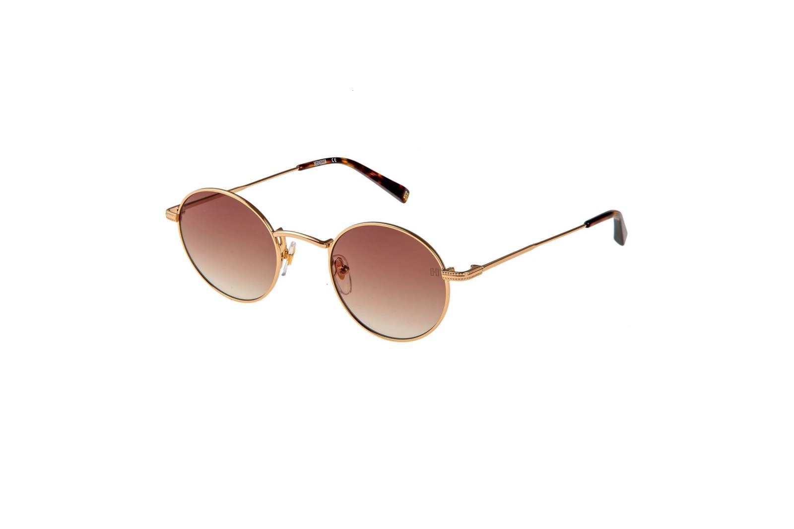 Изящная модель с круглой оправой выполнена из легкого золотого металла и дополнена заушниками в черепаховой расцветке. Градиентные коричневые на 100% защищают глаза от вредного ультрафиолета. В комплекте — фирменный чехол и салфетка.