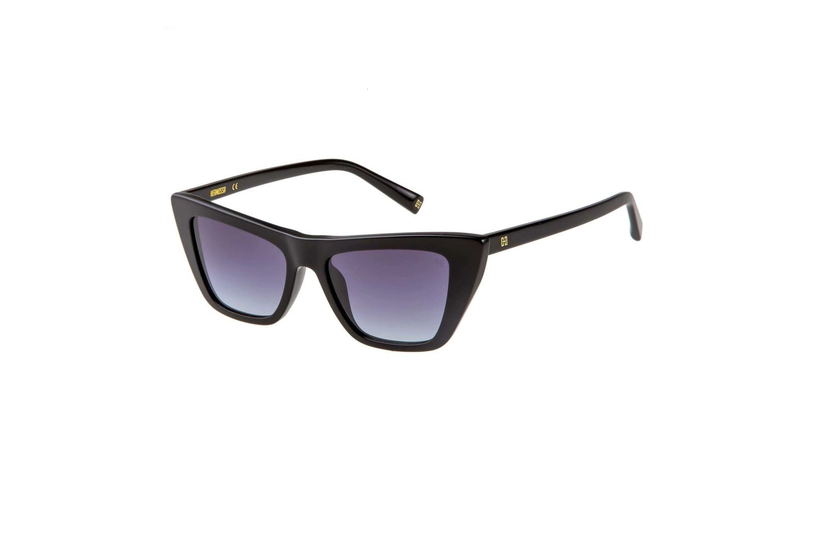 Изящная модель с оправой «кошачий глаз» выполнена из черного ацетата. Градиентные серые линзы на 100% защищают глаза от вредного ультрафиолета. В комплекте — фирменный чехол и салфетка.