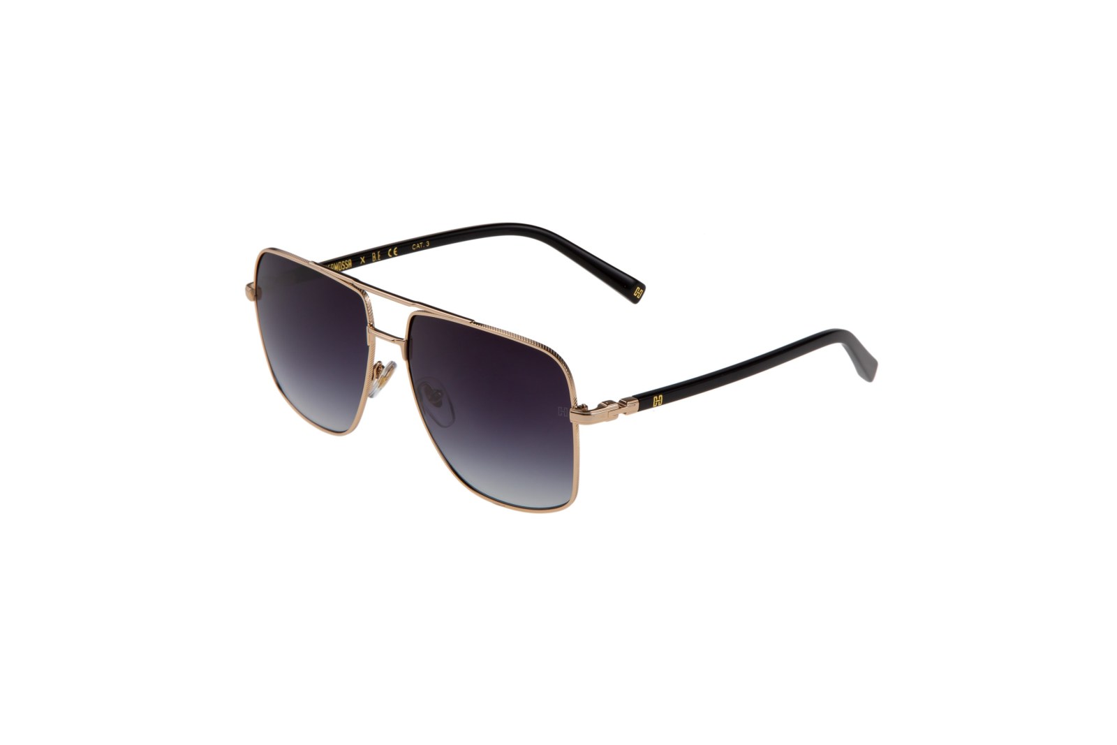 Изящная квадратная оправа из легкого золотого металла. Градиентные серые линзы на 100% защищает глаза от вредного ультрафиолета. В комплекте — фирменный чехол и салфетка.