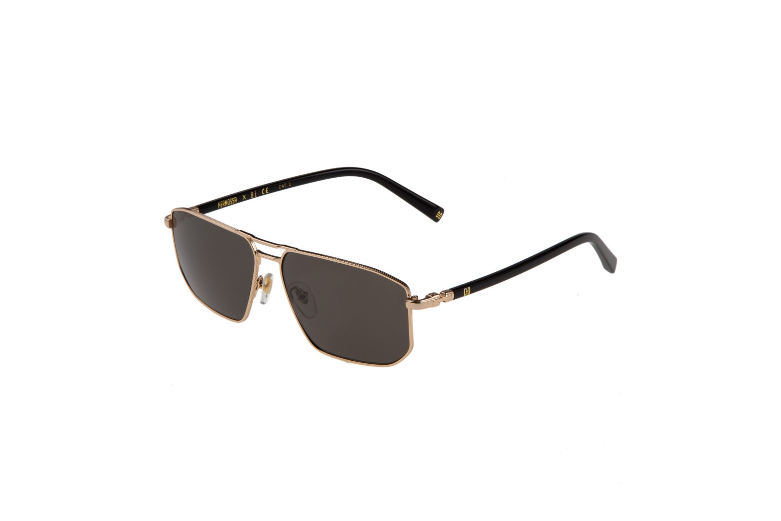 Классическая прямоугольная оправа выполнена из легкого золотого металла. Коричневые линзы на 100% защищают глаза от вредного ультрафиолета. В комплекте — фирменный чехол и салфетка.