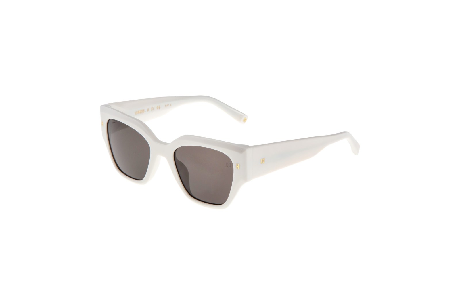 Женственная геометрическая оправа из белого ацетата. Коричневые линзы на 100% защищают глаза от вредного ультрафиолета. В комплекте — фирменный футляр для очков и салфетка.