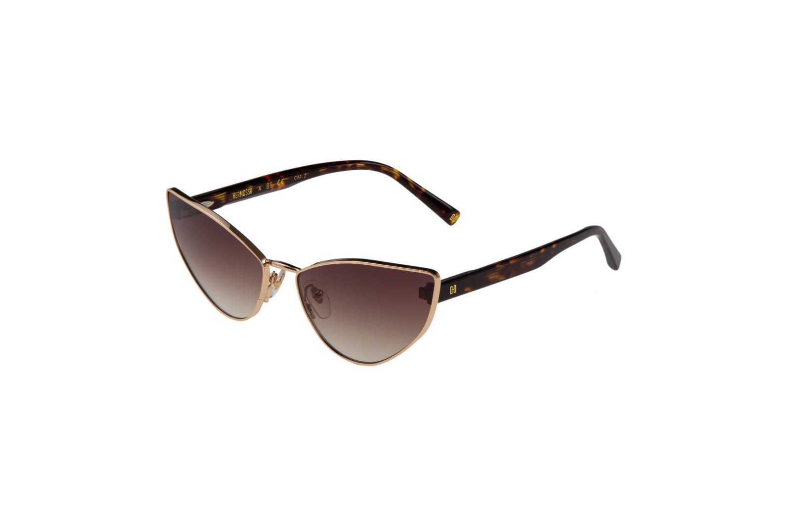 Изящная модель с оправой «кошачий глаз» выполнена из лекого золотого металла и дополнена заушниками в черепаховой расцветке. Градиентные коричневые линзы на 100% защищают глаза от вредного ультрафиолета. В комплекте — фирменный чехол и салфетка.