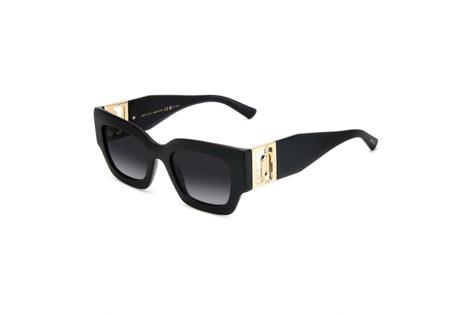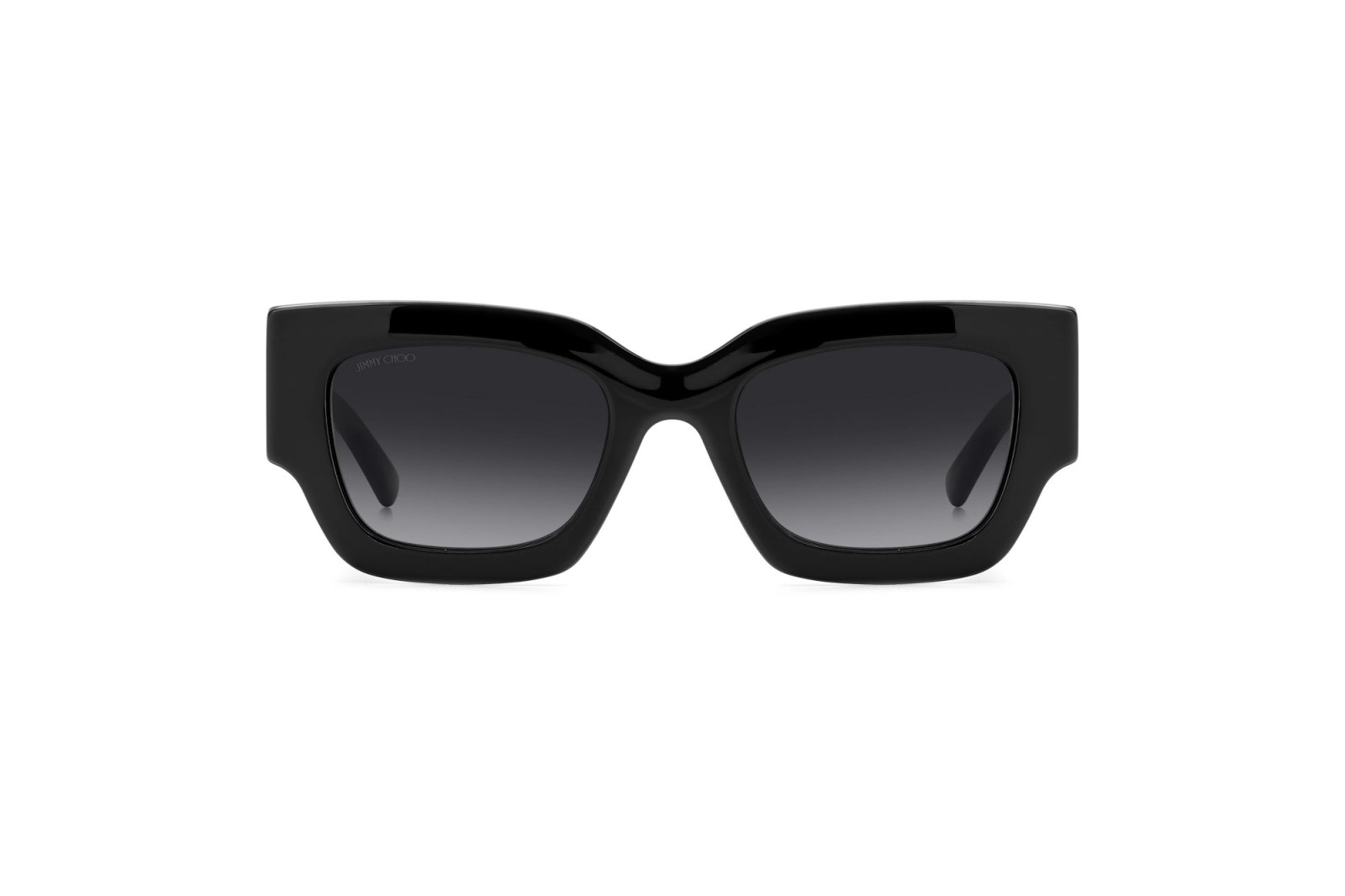 Массивная квадратная оправа из прочного черного ацетата. Серые линзы на 100% защищают глаза от вредного ультрафиолета. Заушники украшены золотистой вставкой с логотипом бренда. В комплекте — фирменный чехол и салфетка.