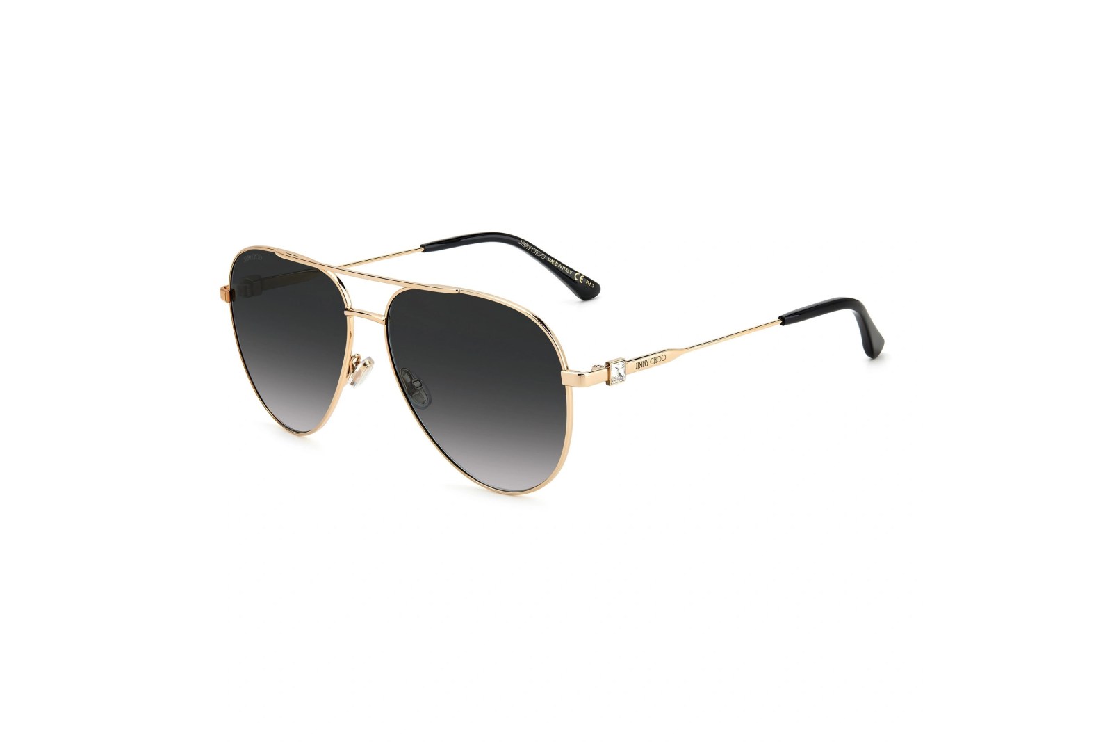 Стильная оправа-авиаторы выполнена из легкого золотого металла с перегородкой над носом и дополнена черными линзами. Тонкие дужки украшены стразами и логотипом бренда. В комплекте — фирменный чехол и салфетка.