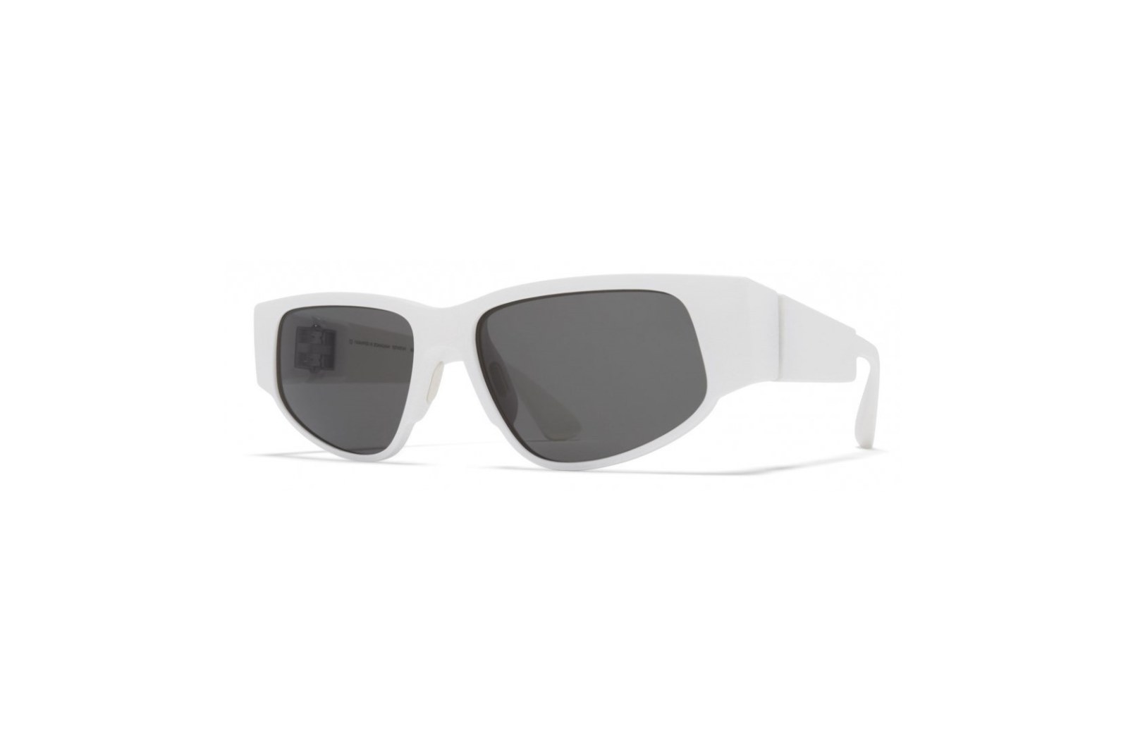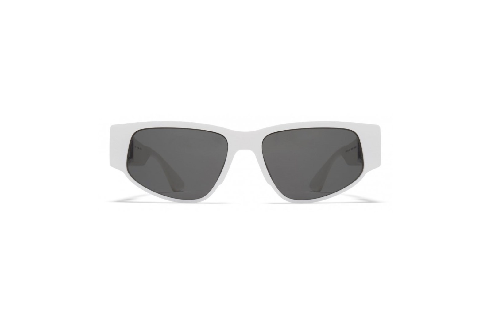 Прямоугольная оправа солнцезащитных очков белого цвета с серыми однотонными линзами. Изготовлена из пластика. Тонированные линзы со 100% защитой от лучей UVA/UVB и антибликовым внутренним покрытием. Изготовлено вручную в Берлине. В комплекте – фирменный футляр для очков и салфетка.