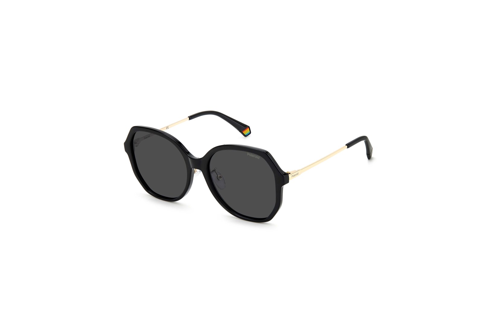 Солнцезащитные очки для женщин со 100% защитой от вредного ультрафиолета. Оправа формы «кошачий глаз» выполнена из черного пластика и золотистого металла. Линзы с поляризацией. Коэффициент пропускания света 8%-18%. В комплекте фирменный чехол и салфетка.
