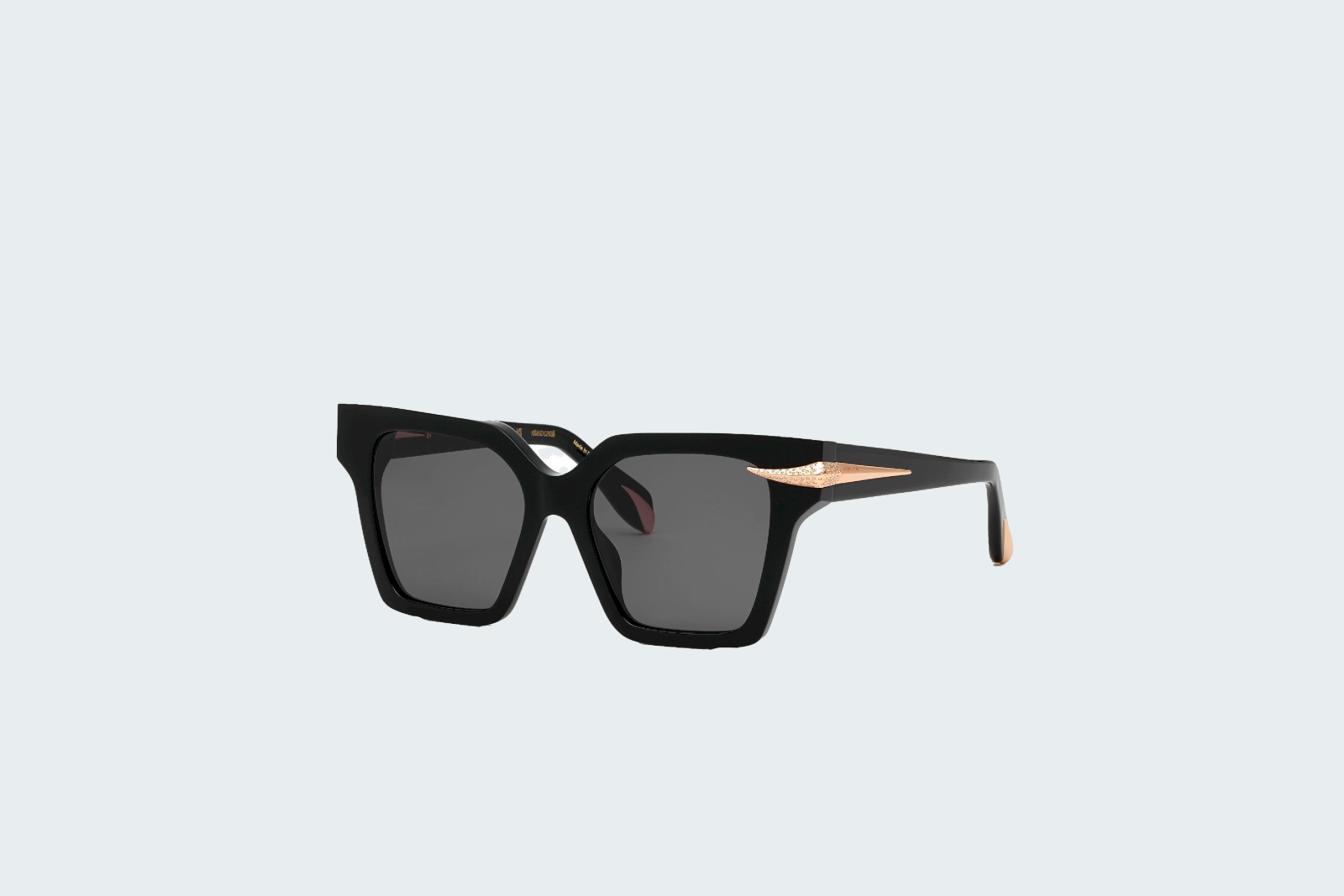 Солнцезащитные очки Roberto Cavalli SRC002S представлены в элегантном глянцевом черном цвете с золотистыми акцентами. Модель отличается выразительной квадратной формой с фирменным гравированным декором на дужках. Глянцевая черная оправа эффектно контрастирует с золотистыми элементами, подчеркивая роскошь бренда. Линзы дымчатого серого тона обеспечивают защиту от ультрафиолета и комфорт для глаз. Эта модель станет ярким акцентом для вечернего и особого образа.