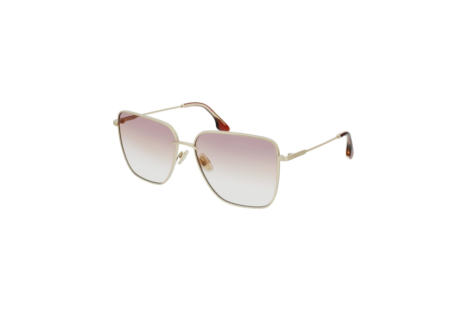 Изящная квадратная оправа из легкого металла золотого цвета и дужками, украшенными коричневыми заушниками. Розовые градиентные линзы на 100% защищают глаза от вредного ультрафиолета. В комплекте — фирменный чехол и салфетка.