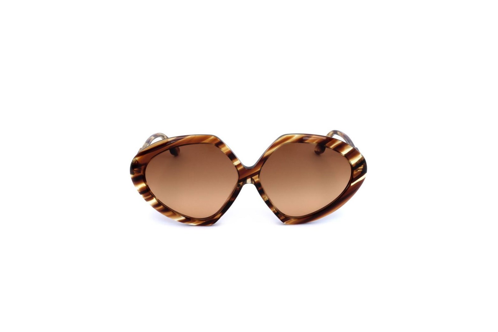 Роскошная модель с массивной геометрической оправой выполнена из коричневого полупрозрачного ацетата. Градиентные коричневые линзы на 100% защищают глаза от вредного ультрафиолета. В комплекте — фирменный чехол и салфетка.