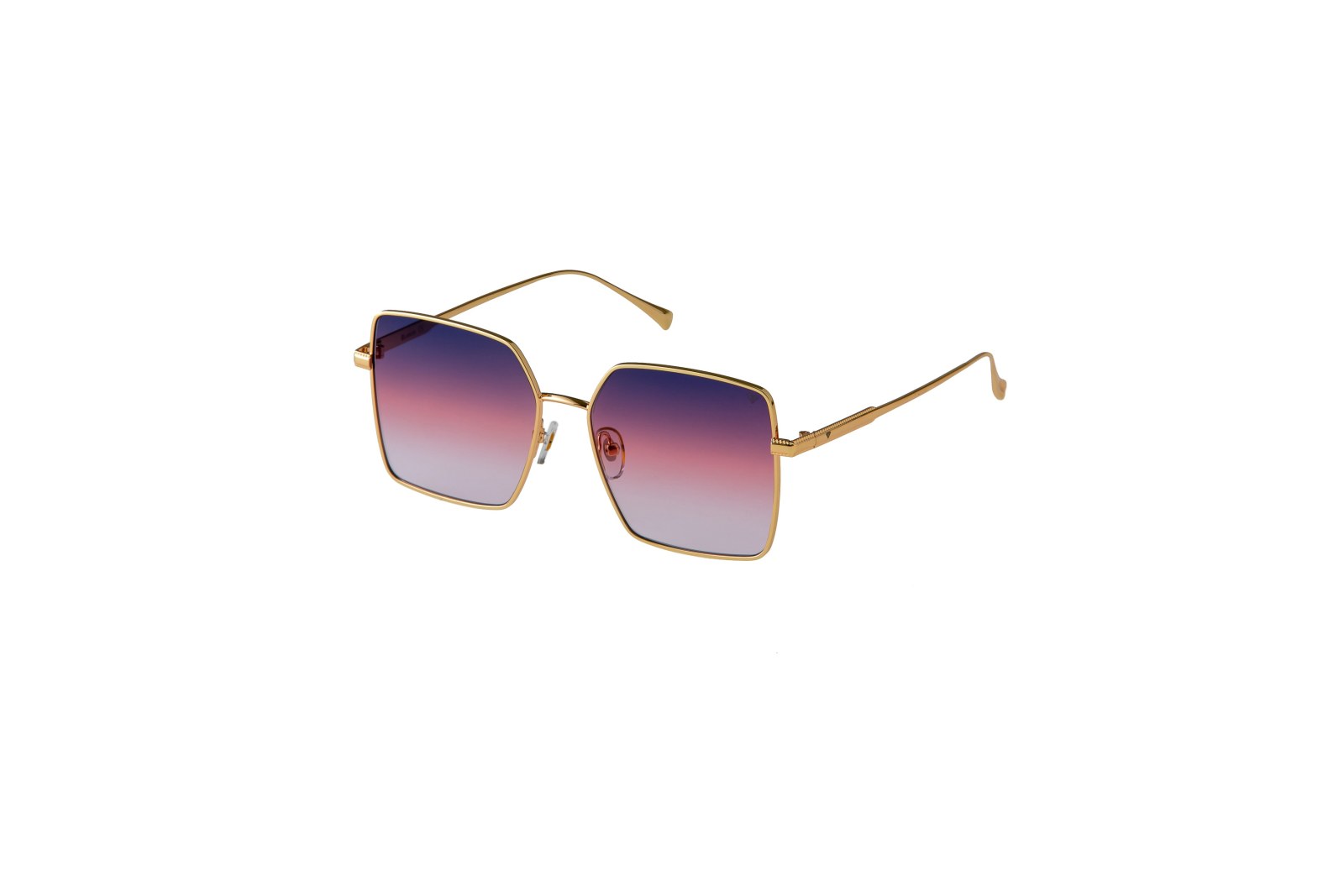 Женственная геометрическая оправа из легкого металла золотого цвета. Градиентные сиреневые линзы на 100% защищают глаза от вредного ультрафиолета. В комплекте — фирменный футляр для очков и салфетка.
