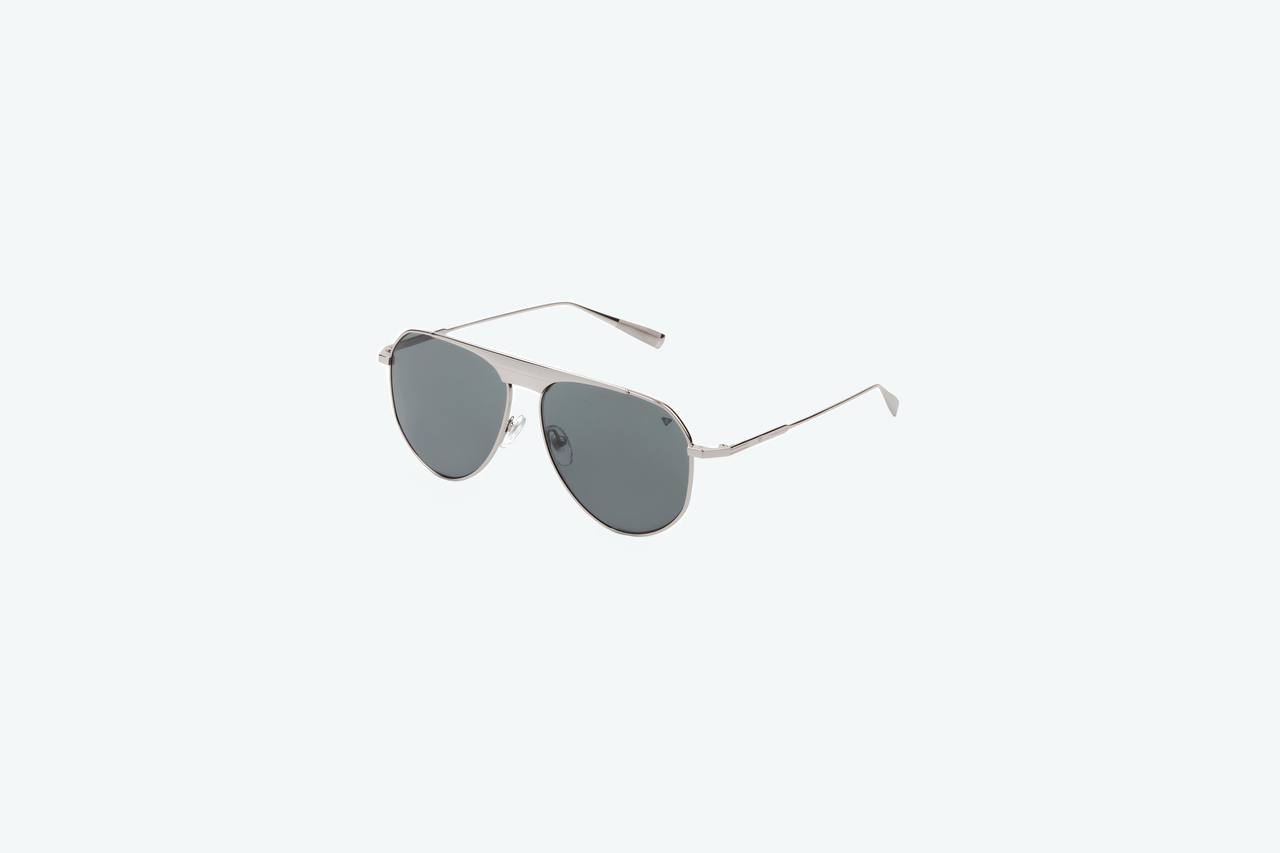 Мужские солнцезащитные очки от BLANCIA выполнены из металла в серебристом цвете. Линзы выполнены в сером цвете. Линзы обладают 100% защитой от ультрафиолетового излучения.