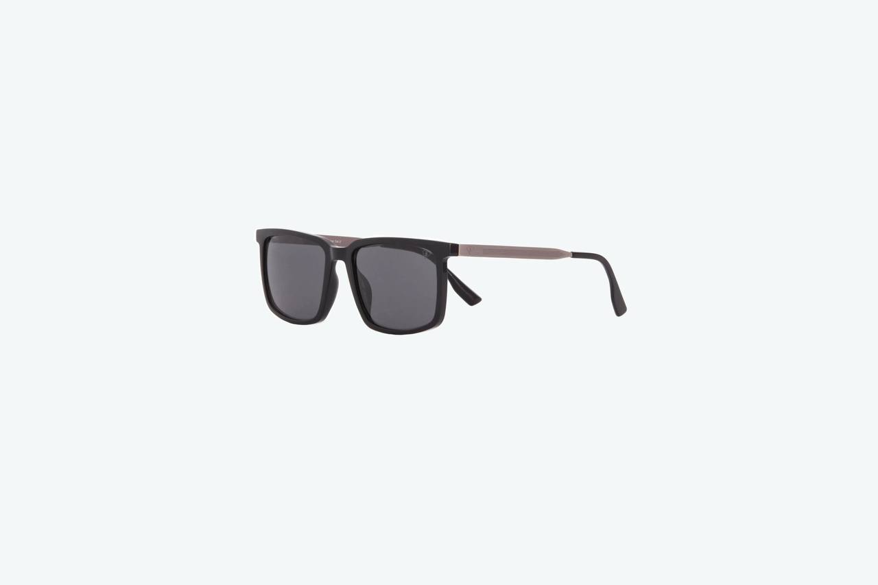 Мужские солнцезащитные очки от BLANCIA выполнены из ацетата в чёрном цвете. Линзы выполнены в сером цвете. Линзы обладают 100% защитой от ультрафиолетового излучения.