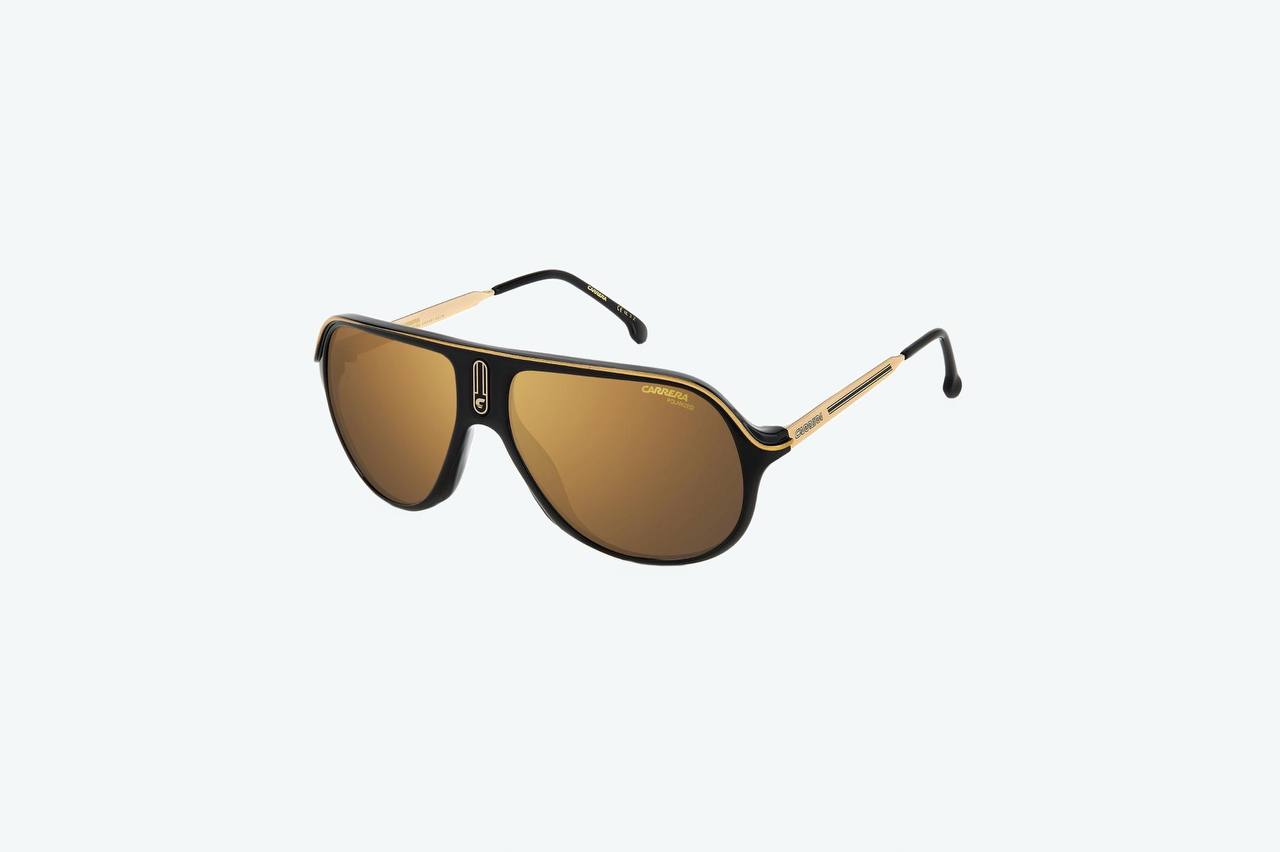 Мужские солнцезащитные очки от CARRERA выполнены из полиамида в цвете "Black Gold". Линзы выполнены в цвете "Gold High Contrast Polarized". Очки обладают 100% защитой от ультрафиолетового излучения.