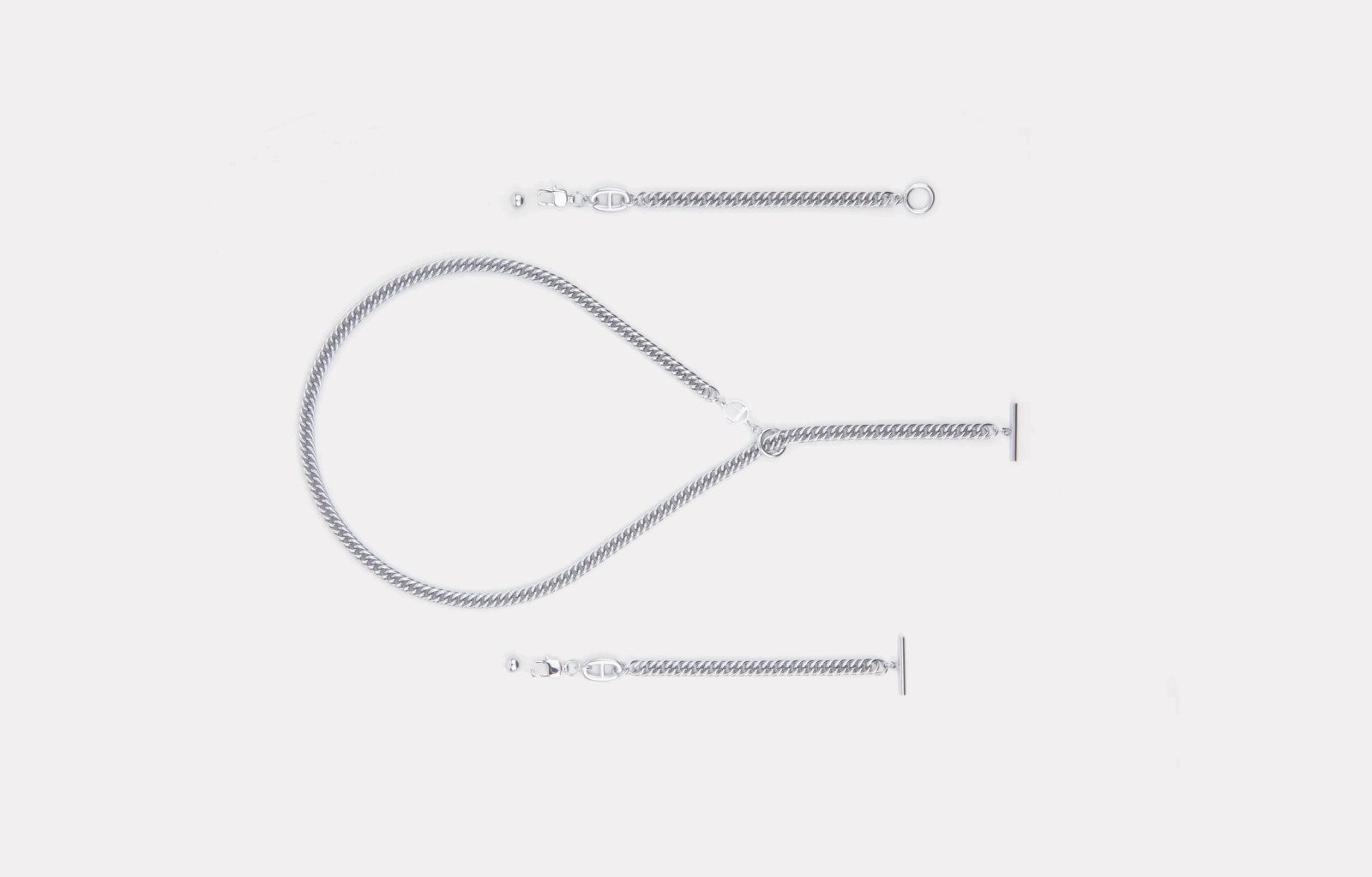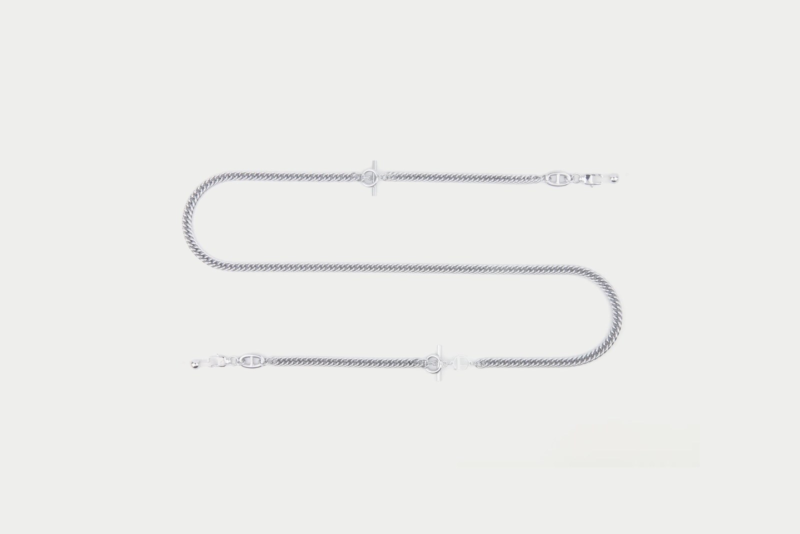Стильная цепочка для очков изготовлена вручную, с роскошным палладиевым покрытием и полированной отделкой. Созданная из массивной плоской цепи, она украшена фирменной подвеской с логотипом For Art's Sake и снабжена силиконовыми петлями для легкого крепления к вашим очкам. Цепочку можно превратить в эффектное ожерелье: просто отрегулируйте длину с помощью Т-образной застежки и носите как чокер, сочетая с другими украшениями For Art's Sake. Размер: 760 мм (можно носить как ожерелье).