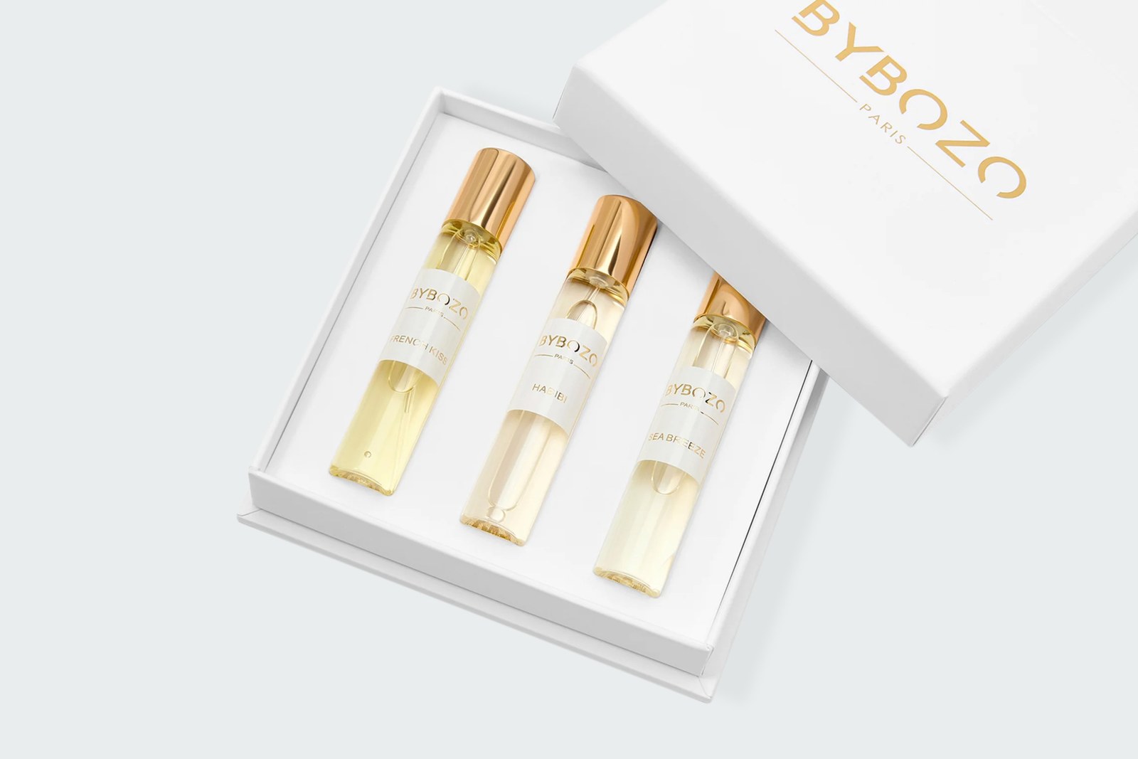 В набор входит 3 аромата BYBOZO Paris (по 18 мл): Sea Breeze, French Kiss, Habibi.
