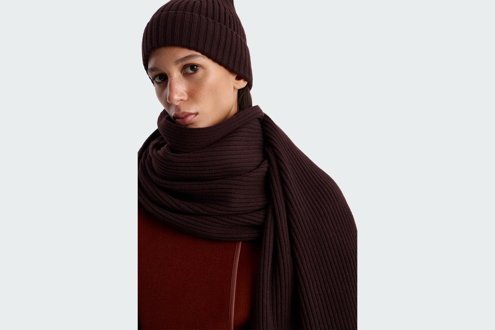 Вязаный шарф с обновленным переплетением — облегченная версия нашей базовой модели. Более тонкая, но не менее теплая.