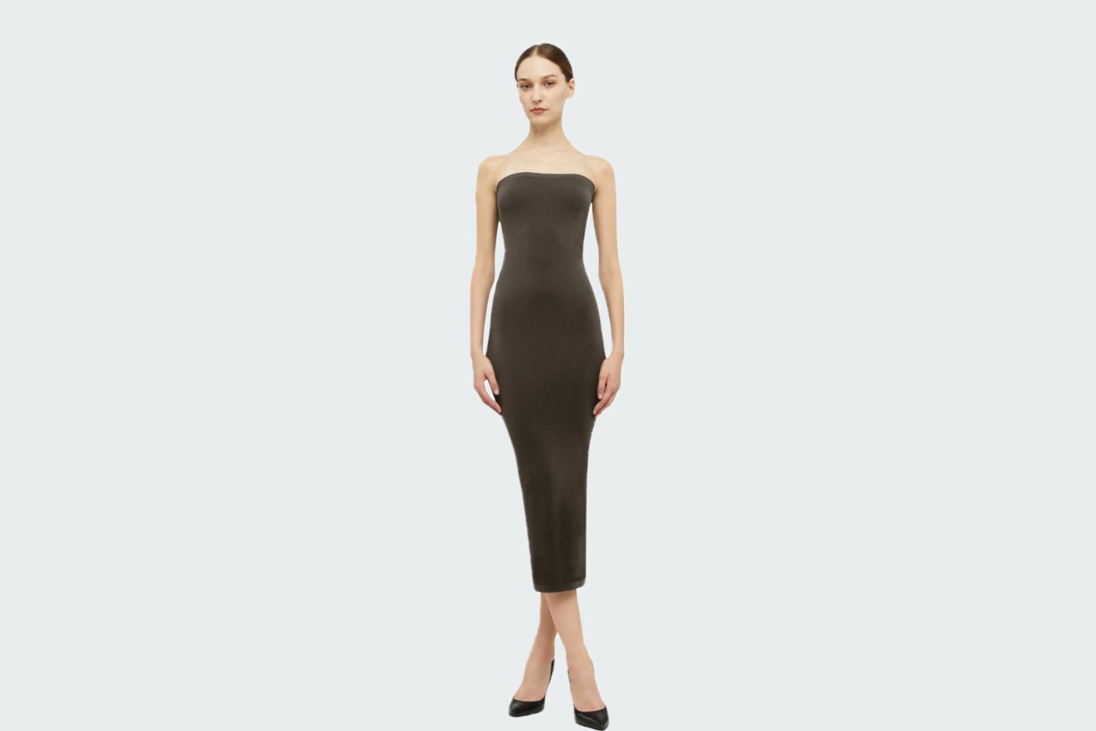 Легендарная модель Wolford платье-трансформер Фаталь, выполненное в технике круговой вязки и усовершенствованное в новой коллекции благодаря использованию бархатистой пряжи Блюфайбер. Платье-труба мягкое на ощупь, как велюр, и деликатно облегает тело благодаря бесшовной конструкции. Универсальное платье-трансформер может применяться как юбка, регулируемая по длине, топ или платье с различными вариантами дизайна зоны декольте.