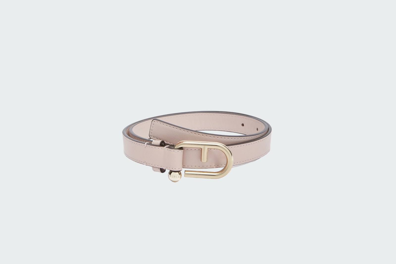 Тонкий и элегантный ремень Furla Nuvola изготовлен из роскошной зернистой кожи. Форма пряжки сочетает в себе знаковый логотип Furla Arch и оригинальный круглый элемент бренда. Ширина: 2 см