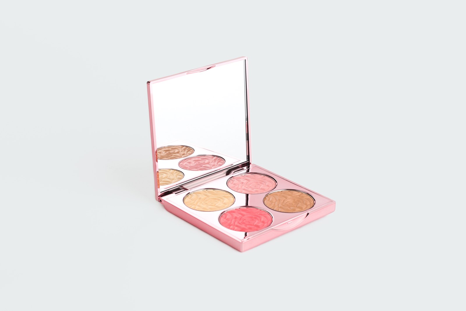 Четыре оттенка подсвечивающей пудры с тиснением в виде цветка розы и обогащенных маслом шиповника. Создайте безупречный, сияющий цвет лица с помощью нескольких простых штрихов.