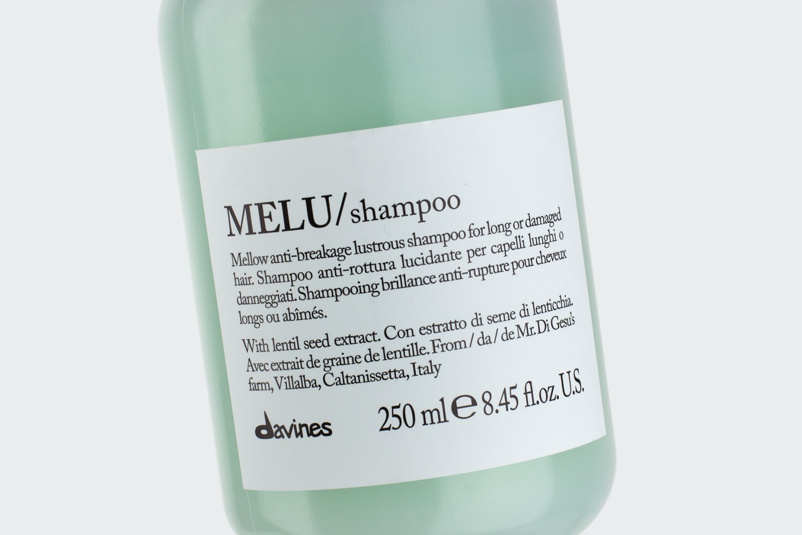 Шампунь для предотвращения ломкости MELU бережно очищает поврежденные или длинные волосы и придает локонам блеск и упругость.