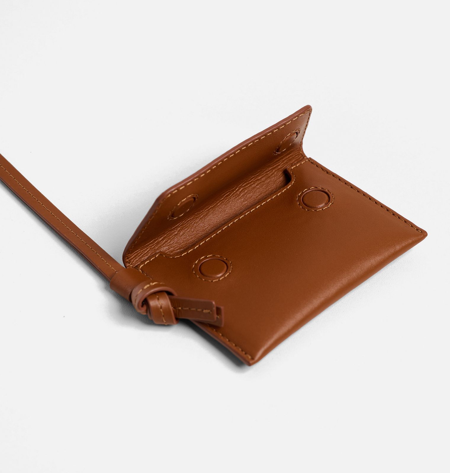 Картхолдер в абсолютно новом формате — это про простую функциональность, которая выглядит стильно. Новый аксессуар выполнен из гладкой кожи и дополнен кожаным шнуром, который позволяет носить его разными способами: на шее, как акцент на талии или в комплекте с любимой сумкой. Такой формат легко подстраивается под ритм дня и настроение.