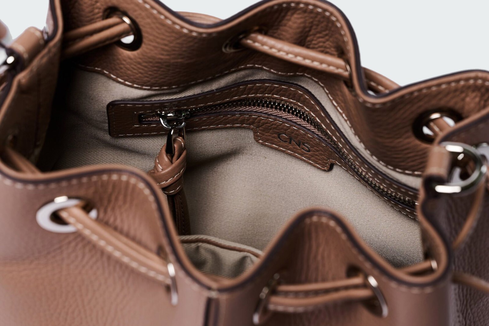В основное отделение с регулируемой кулиской поместятся смартфон, термокружка, зонт, портмоне, ежедневник и косметичка.