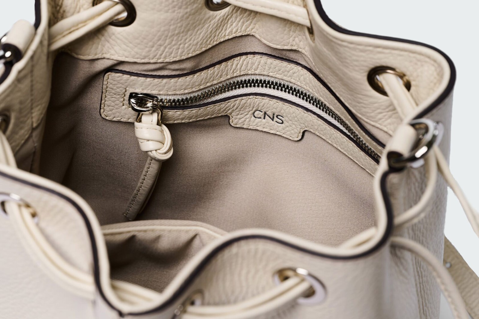В основное отделение с регулируемой кулиской поместятся смартфон, термокружка, зонт, портмоне, ежедневник и косметичка.