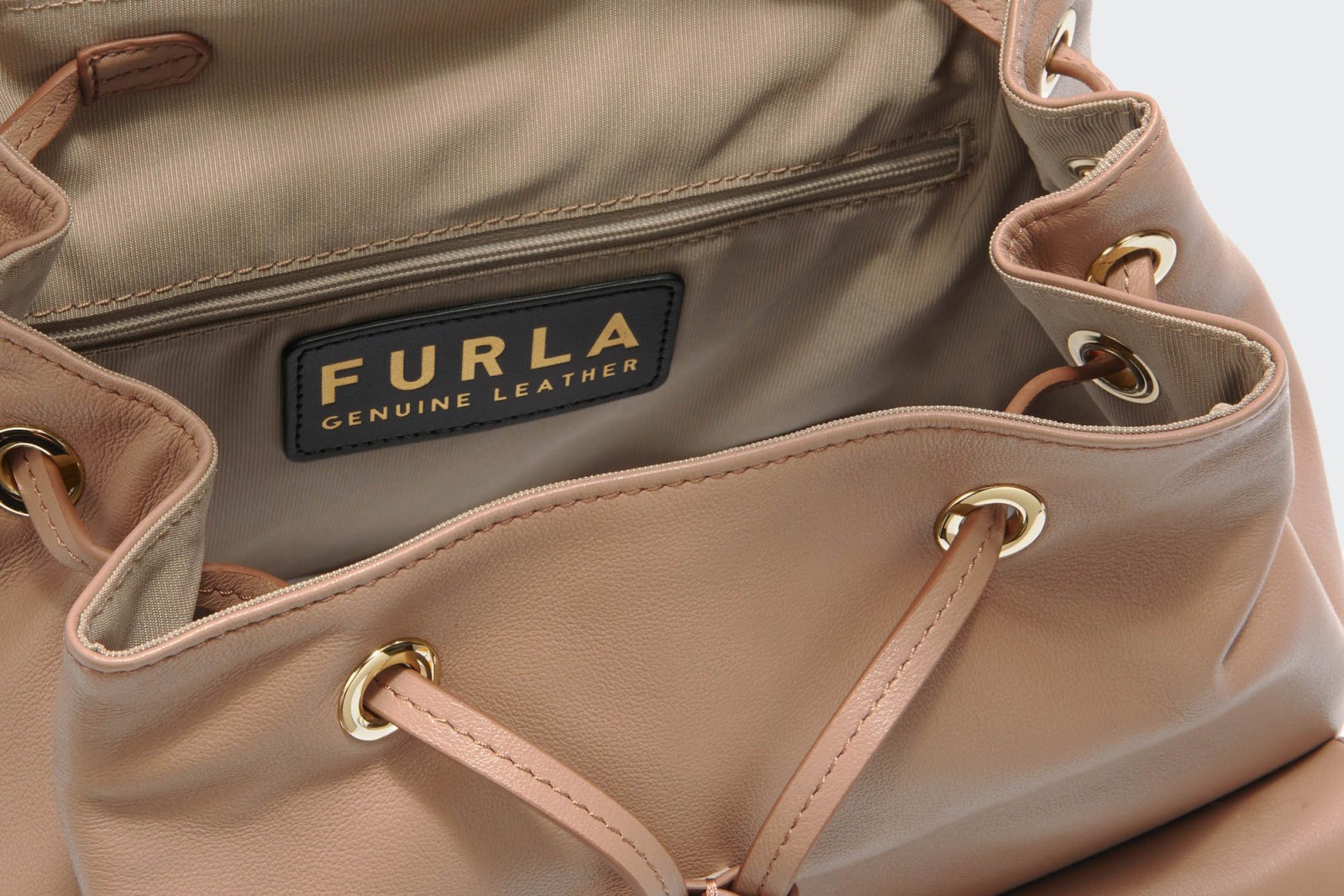 Вместительный и практичный рюкзак большого размера Furla Flow из зерненой тисненой кожи имеет два передних кармана для дополнительного полезного пространства. Дизайн дополнен регулируемым плечевым ремнем и вставкой из дышащей ткани на спинке для оптимального комфорта. Оптимальный вариант для прогулок по городу и путешествий.