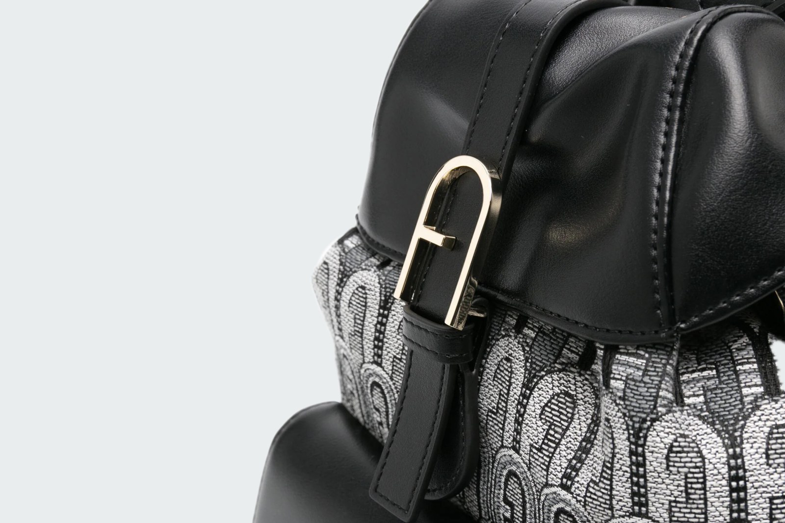 Рюкзак Furla Flow из кожи с текстильными вставками сочетает стиль с функциональностью, а компактность – с высокой вместительностью. Дизайн дополнен передним карманом, позволяющим положить еще больше вещей, регулируемым плечевым ремнем и вставкой из дышащей ткани на спинке для оптимального комфорта. Идеальный аксессуар для отдыха и поездок, который можно даже прикрепить к чемодану с помощью верхней ручки.