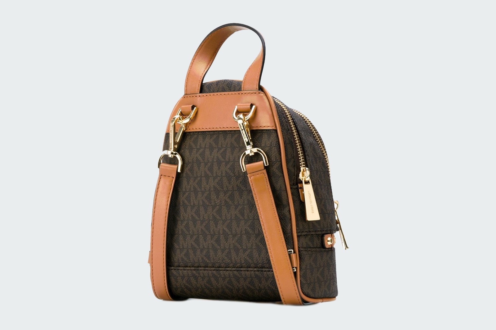 Мини-рюкзак с принтом в виде лого бренда дополнен двумя основными отделениями на молнии и маленьким карманом на молнии спереди, чтобы точно вместить все необходимые вам вещи. Трансформируемые ремешки позволяют носить эту модель не только как рюкзак, но и через плечо.