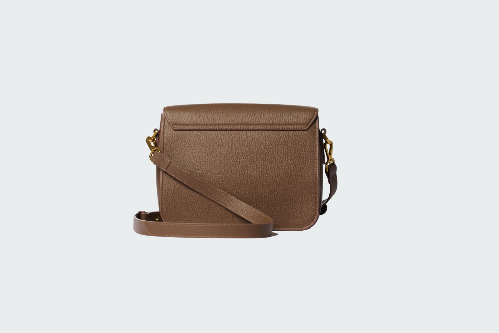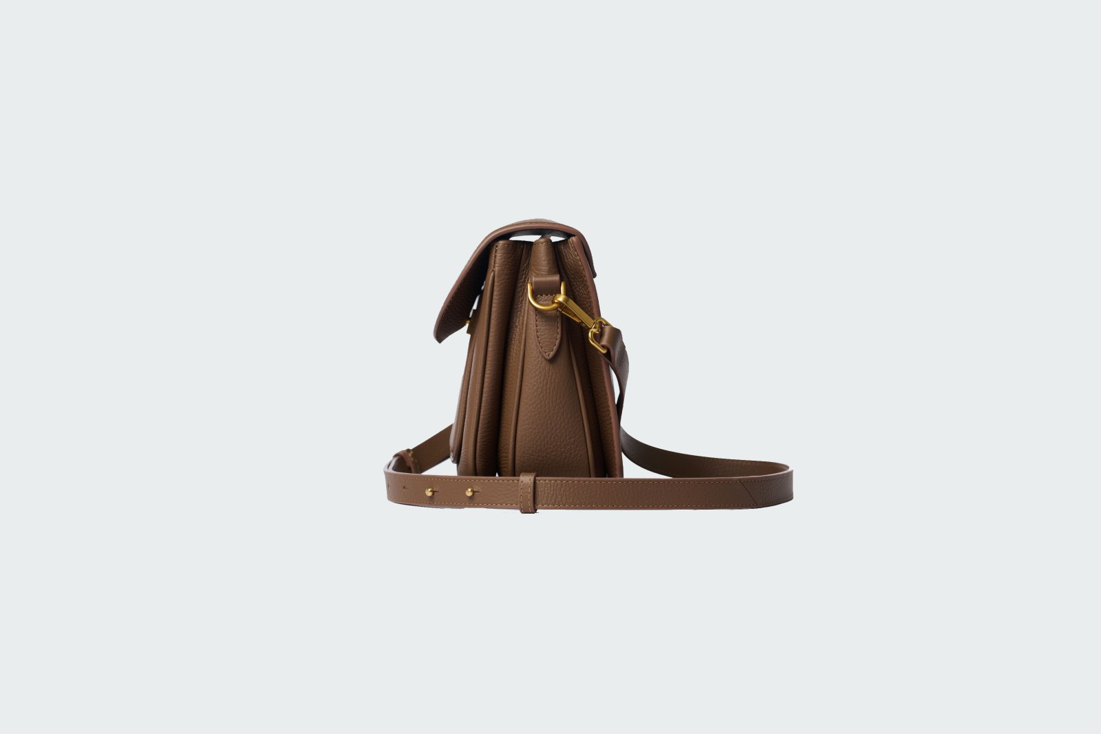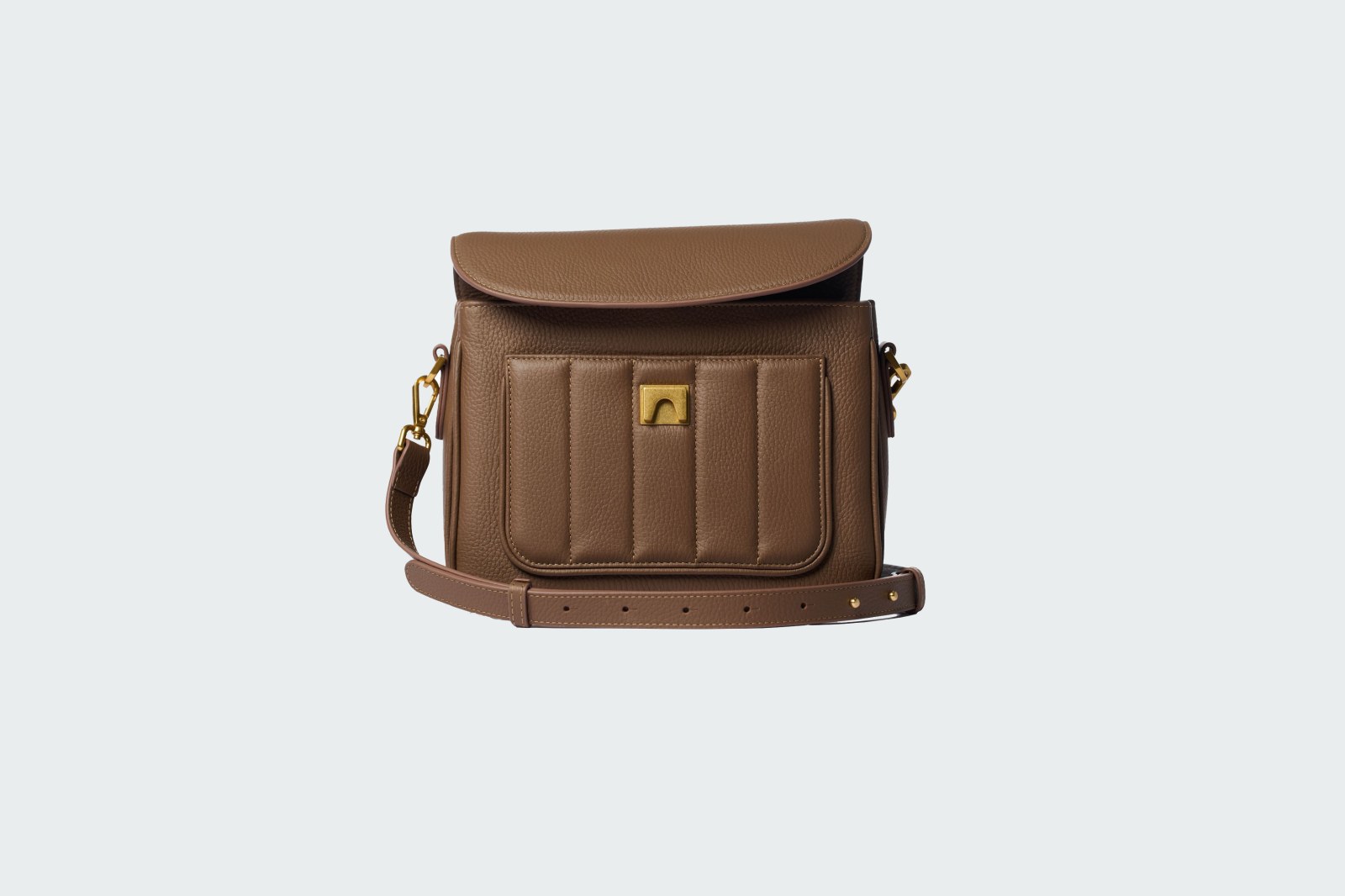 Модель ANNIE из зернистой кожи подчёркивает объемная стежка на переднем кармане, в который поместится телефон или картхолдер.