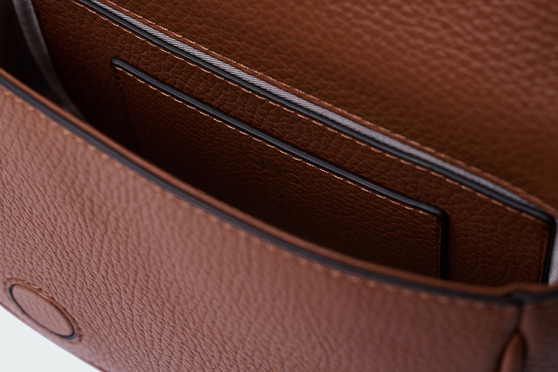 Модель выполнена из мягкой зернистой кожи, застегивается на два плоских потайных магнита.