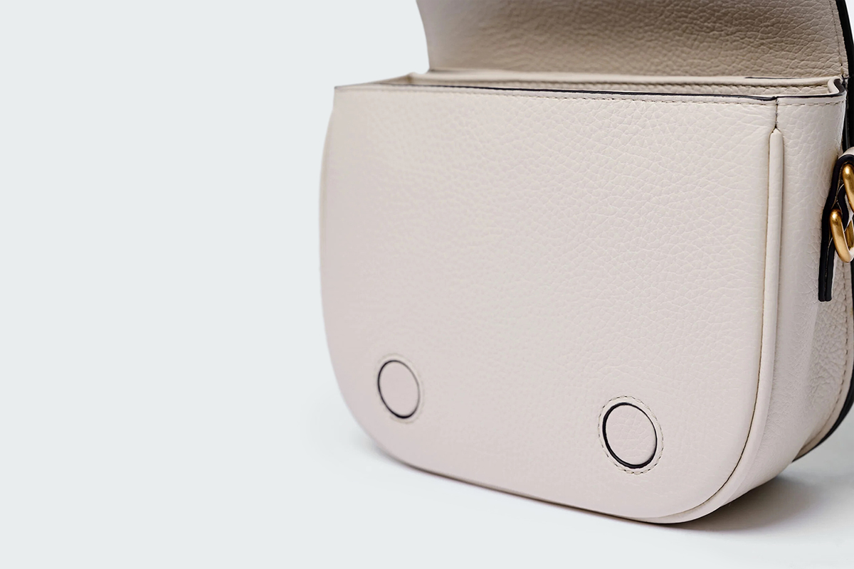 Сумка выполнена из мягкой зернистой кожи и удобно застегивается на два плоских магнита. В комплект также входит два съемных регулируемых плечевых ремня.
