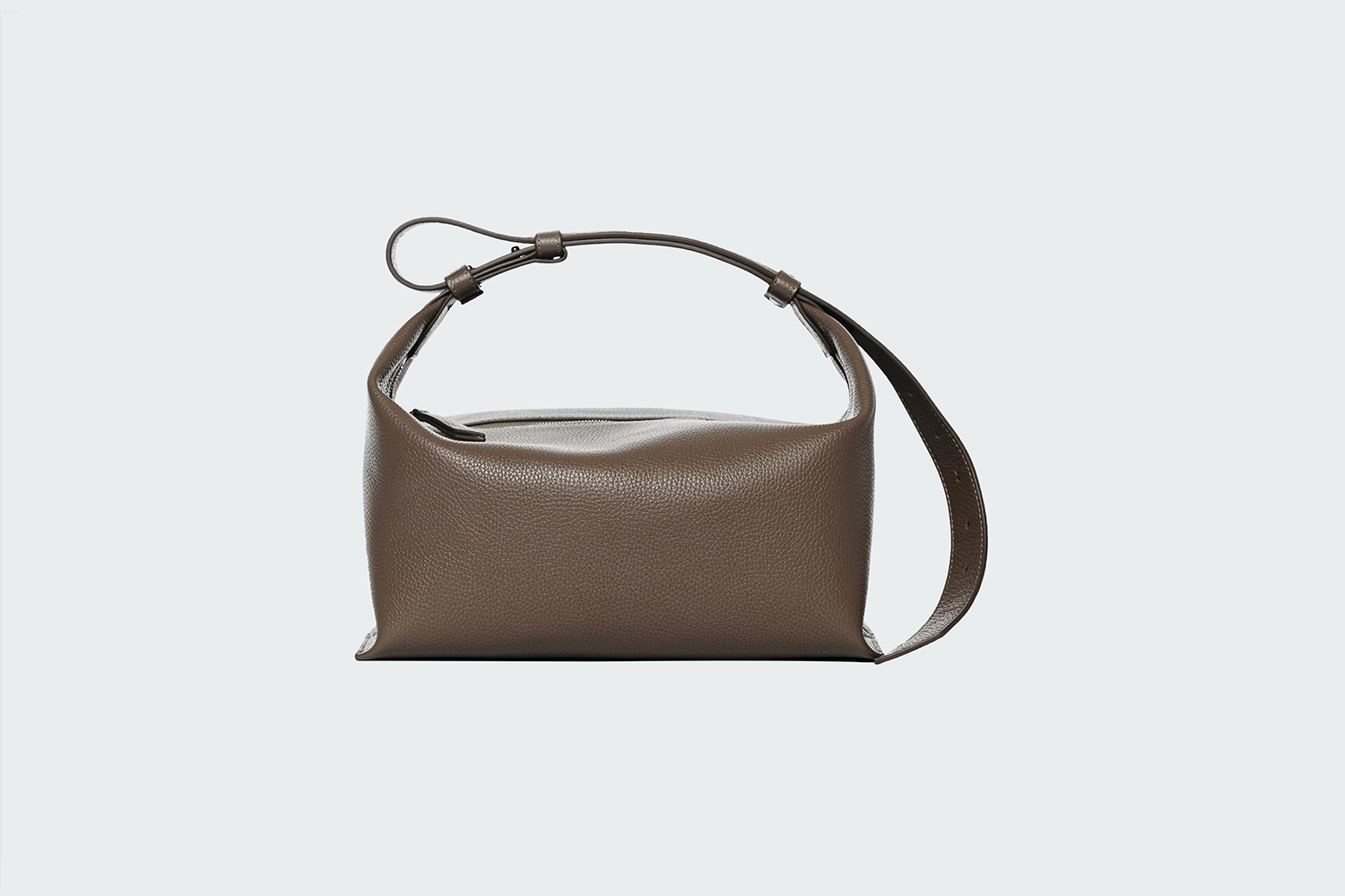 Сумка выполнена из мягкой зернистой кожи и закрывается на молнию. Регулируемый по длине плечевой ремень предлагает разные способы ношения — в руке или на плече.