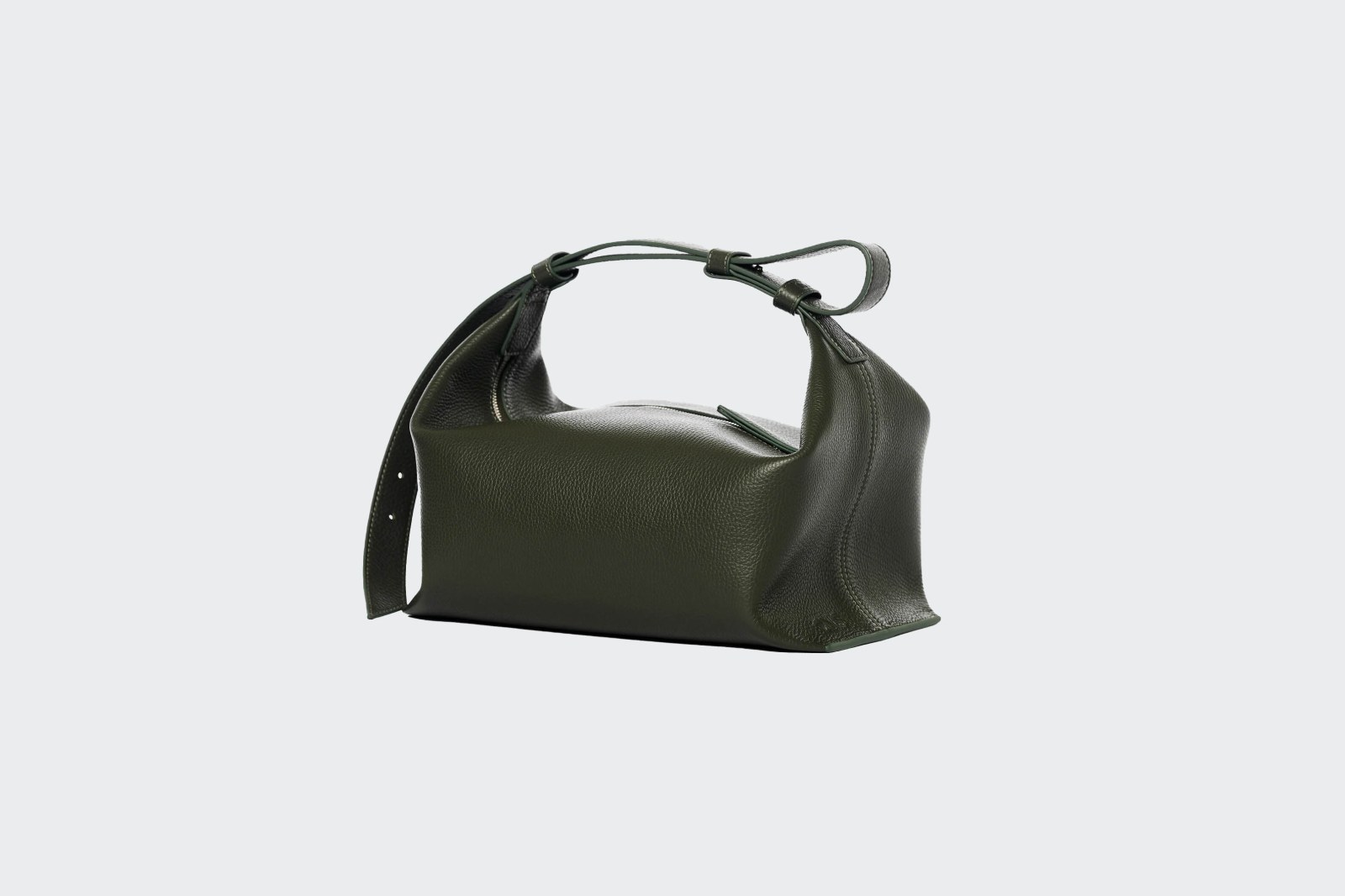 Сумка выполнена из мягкой зернистой кожи и закрывается на молнию. Регулируемый по длине плечевой ремень предлагает разные способы ношения — в руке или на плече.