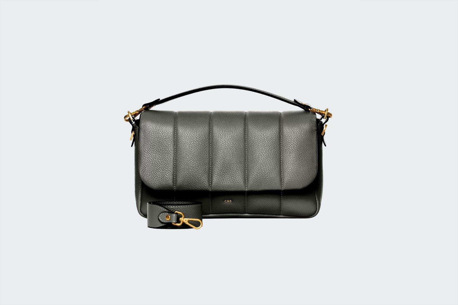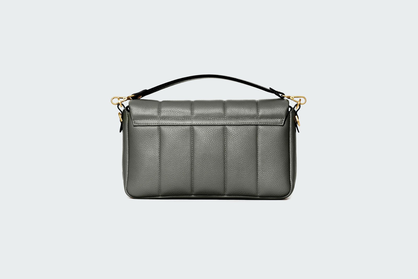 Актуальная форма сумки подчеркнута объемной стежкой. Аксессуар выполнен из мягкой зернистой кожи и дополнен лаконичным логотипом бренда. В комплекте по традиции есть съемная широкая ручка и плечевой ремень.