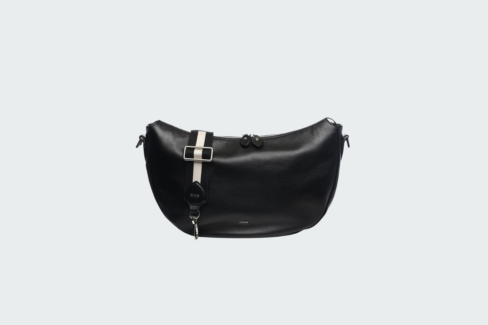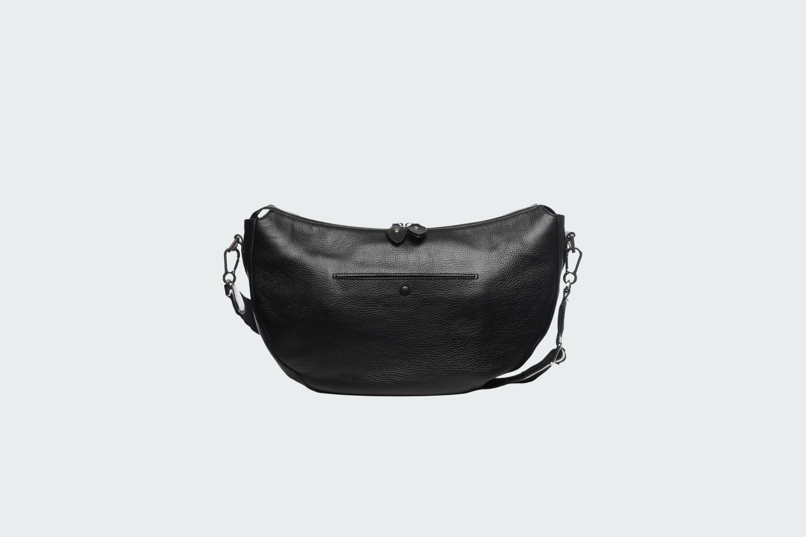 Сумка MULTIBA в форме полумесяца органично впишется как в образ в стиле бохо, так и в повседневный комплект с джинсами.